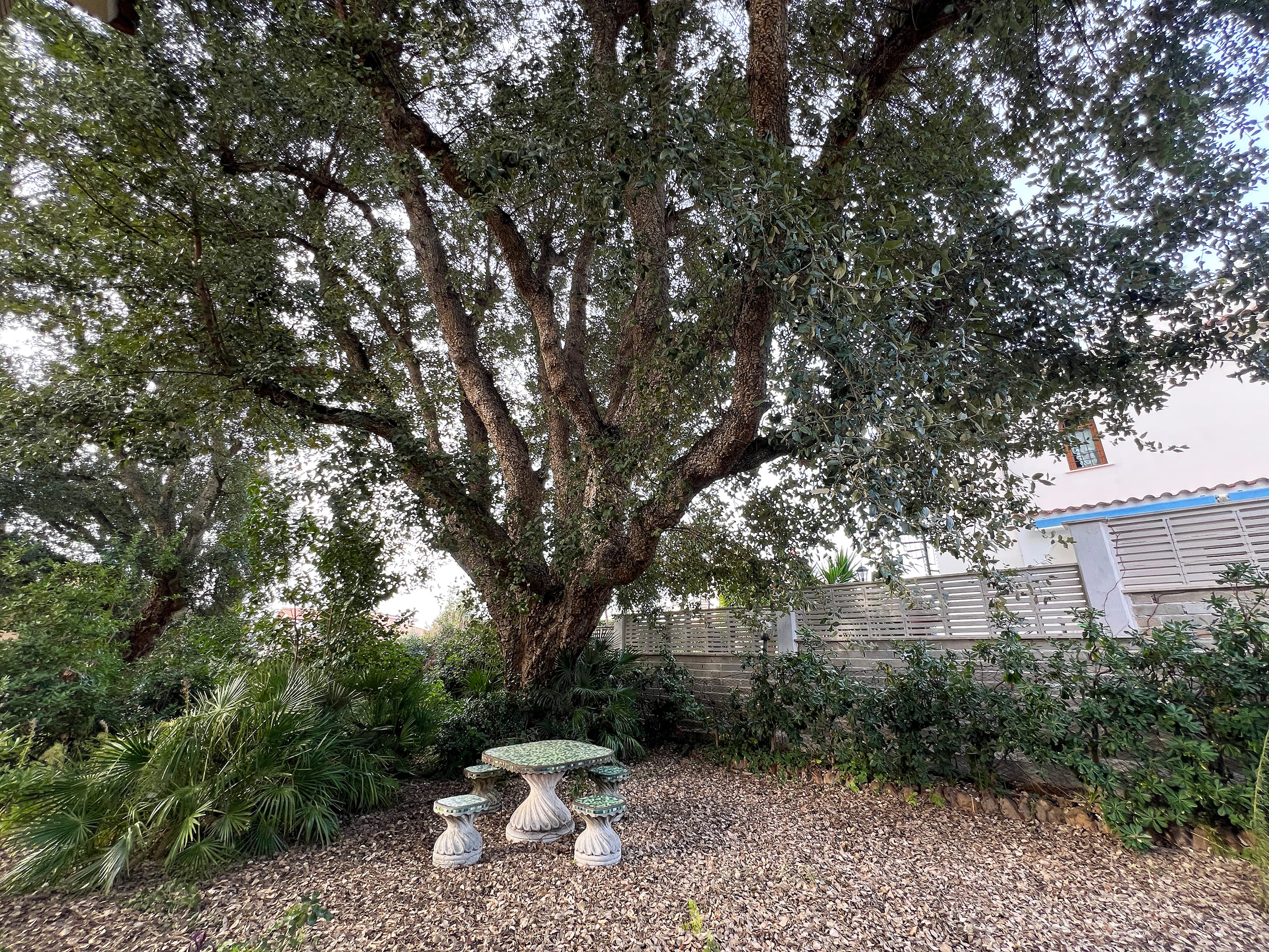 The property includes a lush park of 2,540 m2, with large relaxation areas and tall trees.