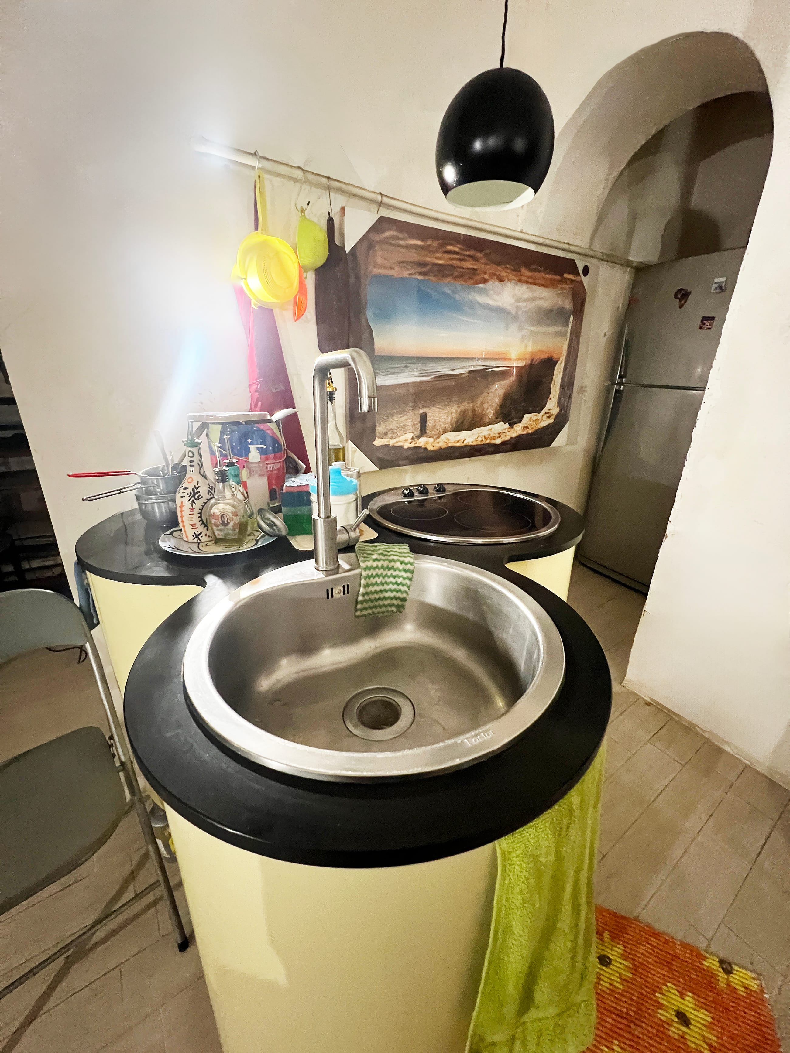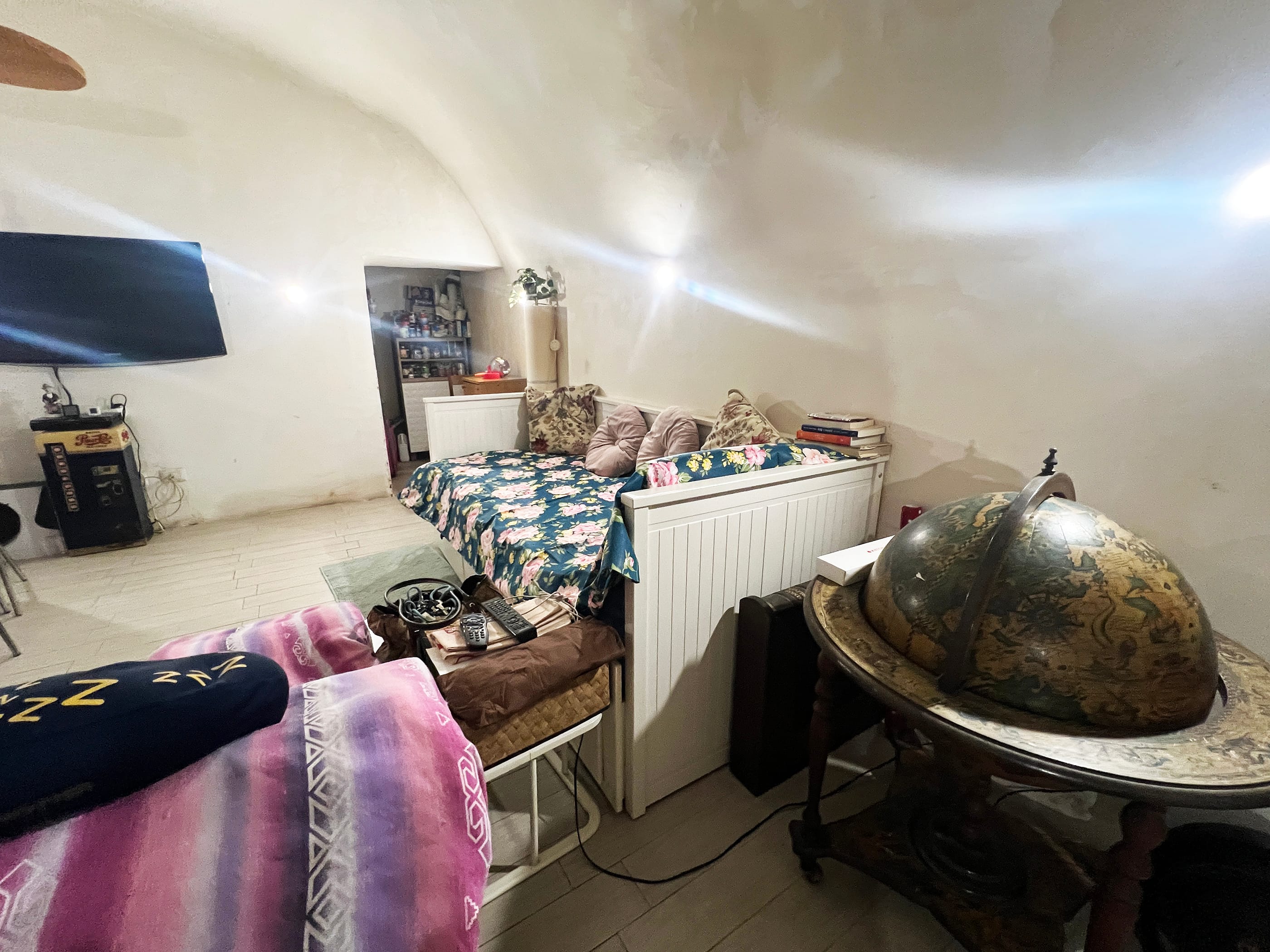 - The room below, reachable both by staircase and lift, measures approximately 45.00 m2 and is currently used as a hobby room with kitchenette.