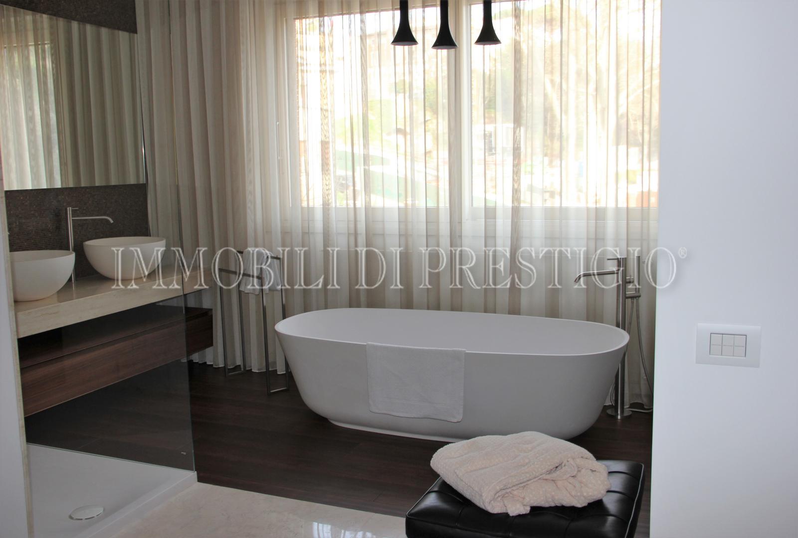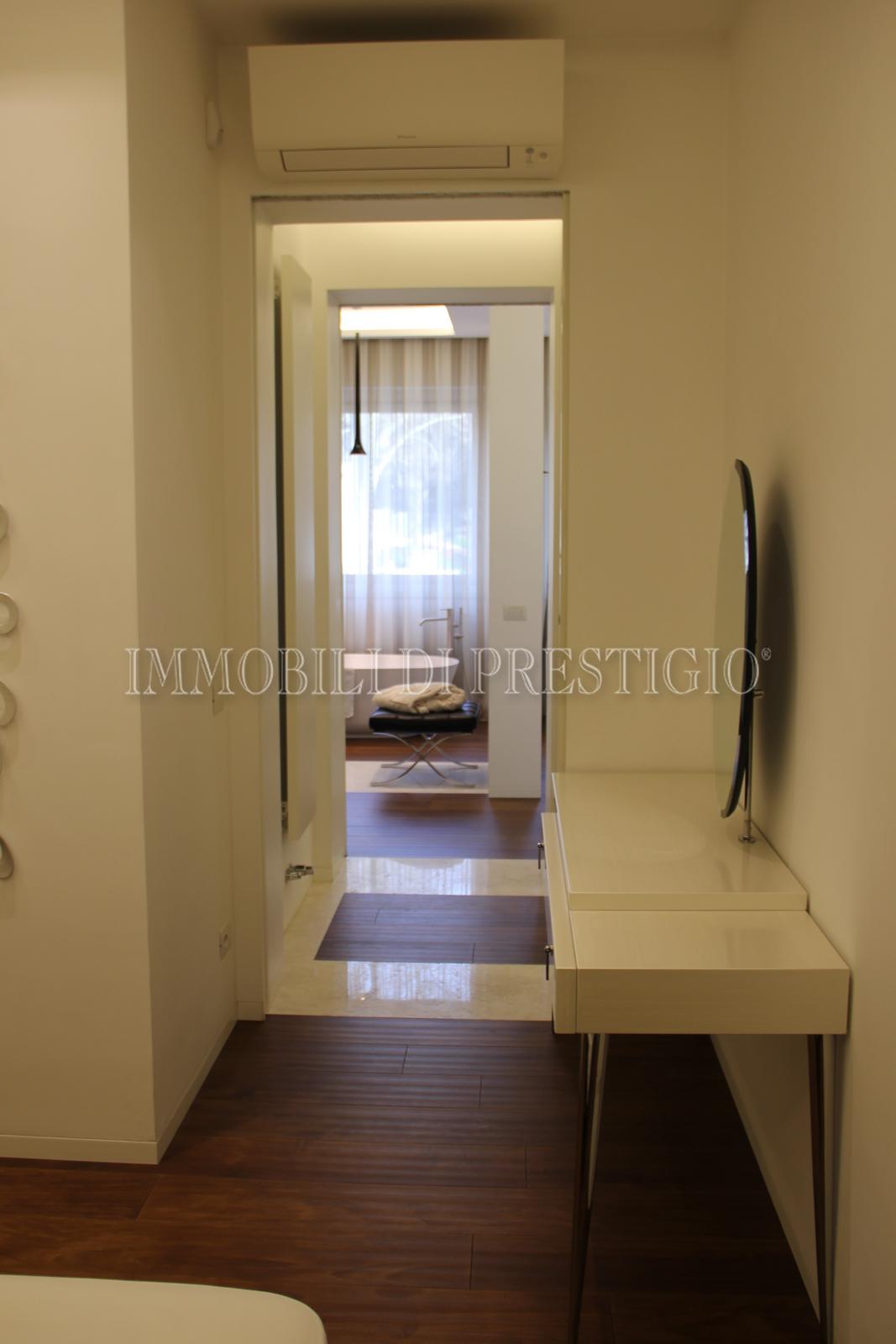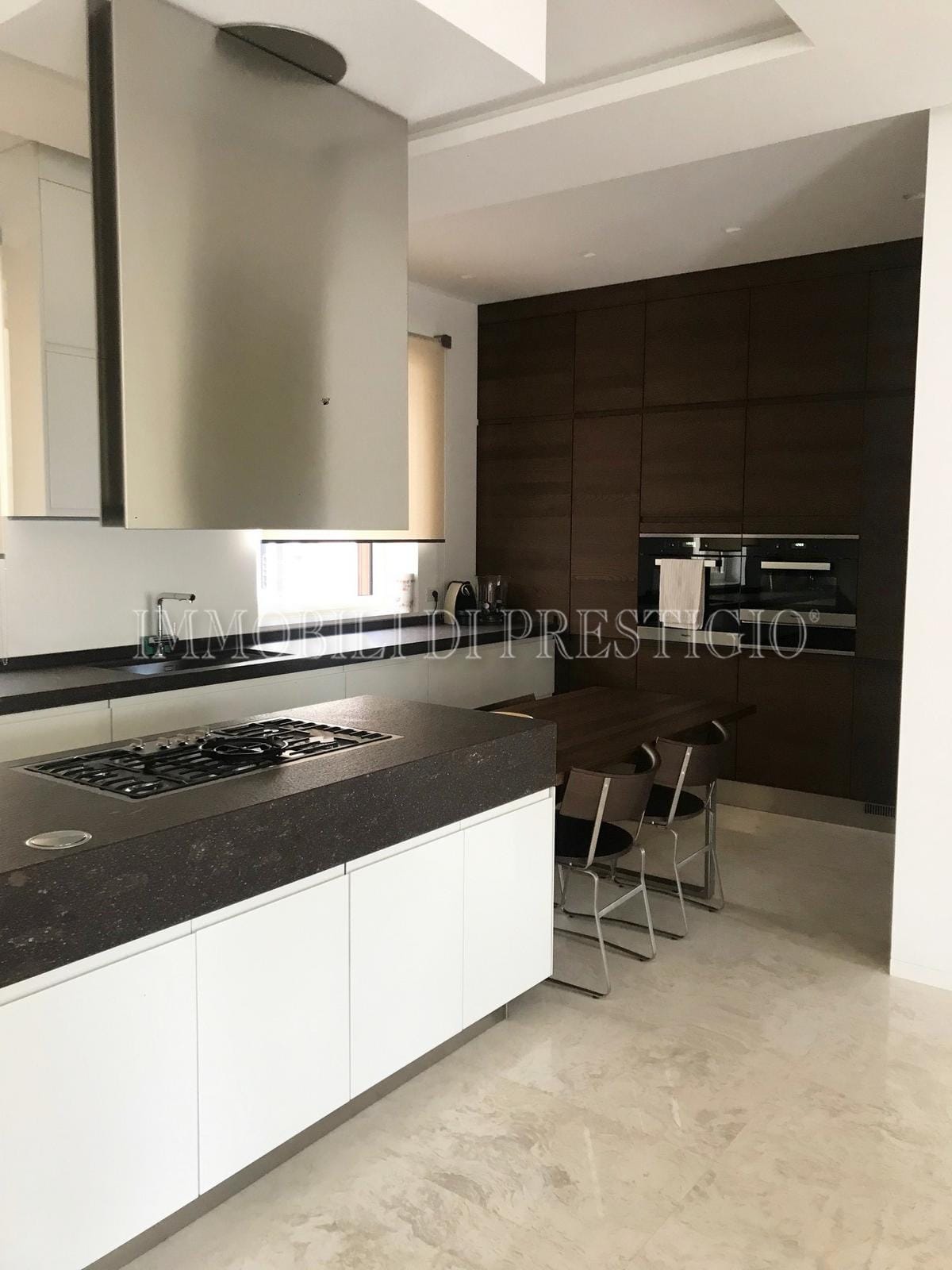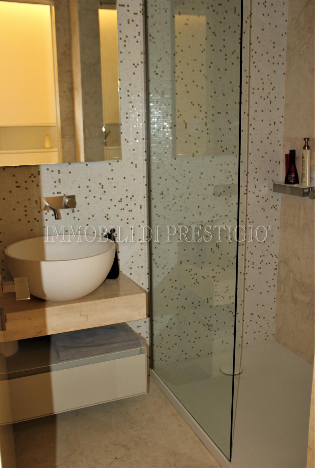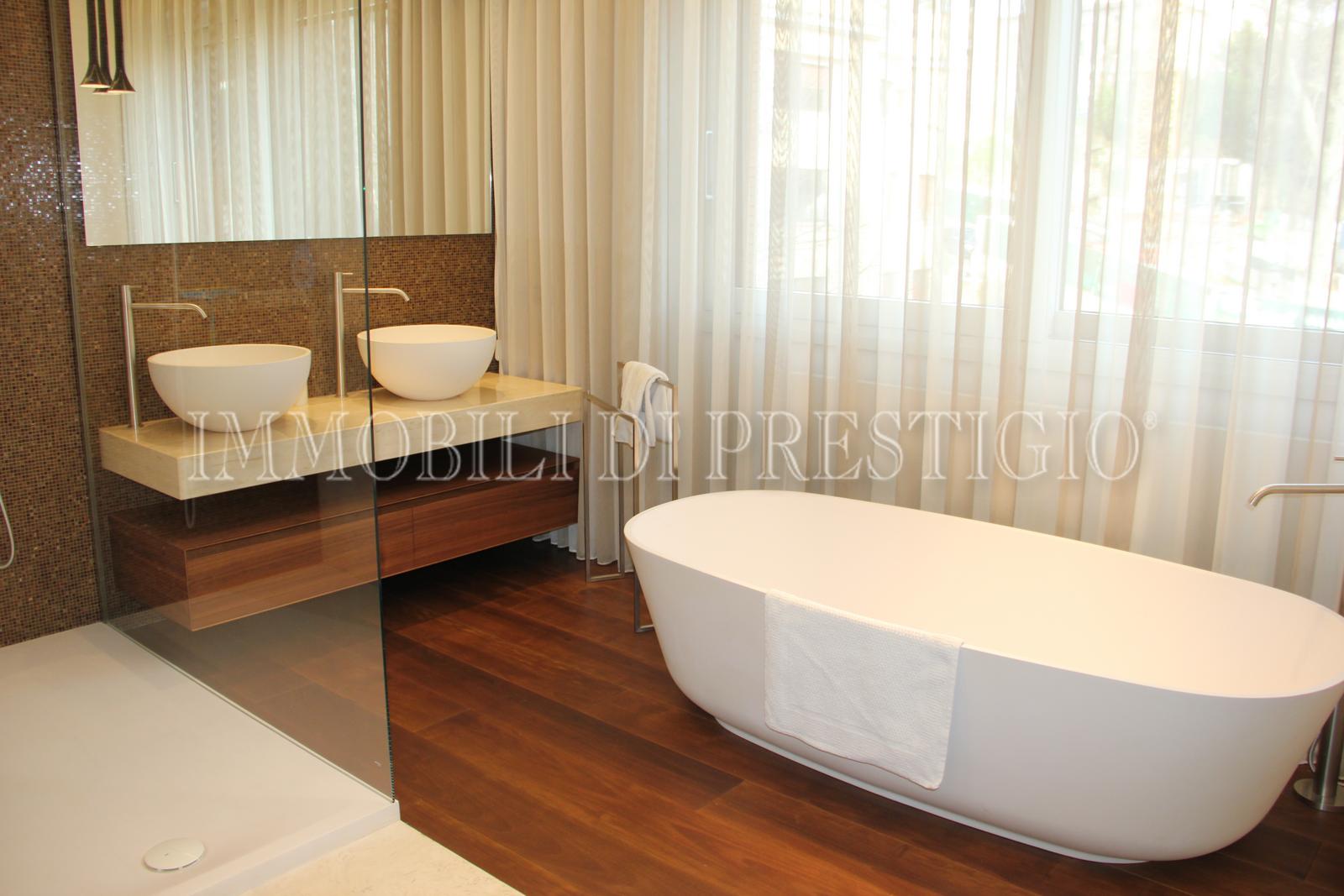 A long corridor embellished with modern boiserie and cupboard to measure, places in the sleeping area consisting of the three double bedrooms with en suite bathrooms, of which the master with exposed bath, shower and wardrobe, service room, with laundry / ironing; From the sleeping area you can access the large panoramic loggia and a long balcony facing the area.