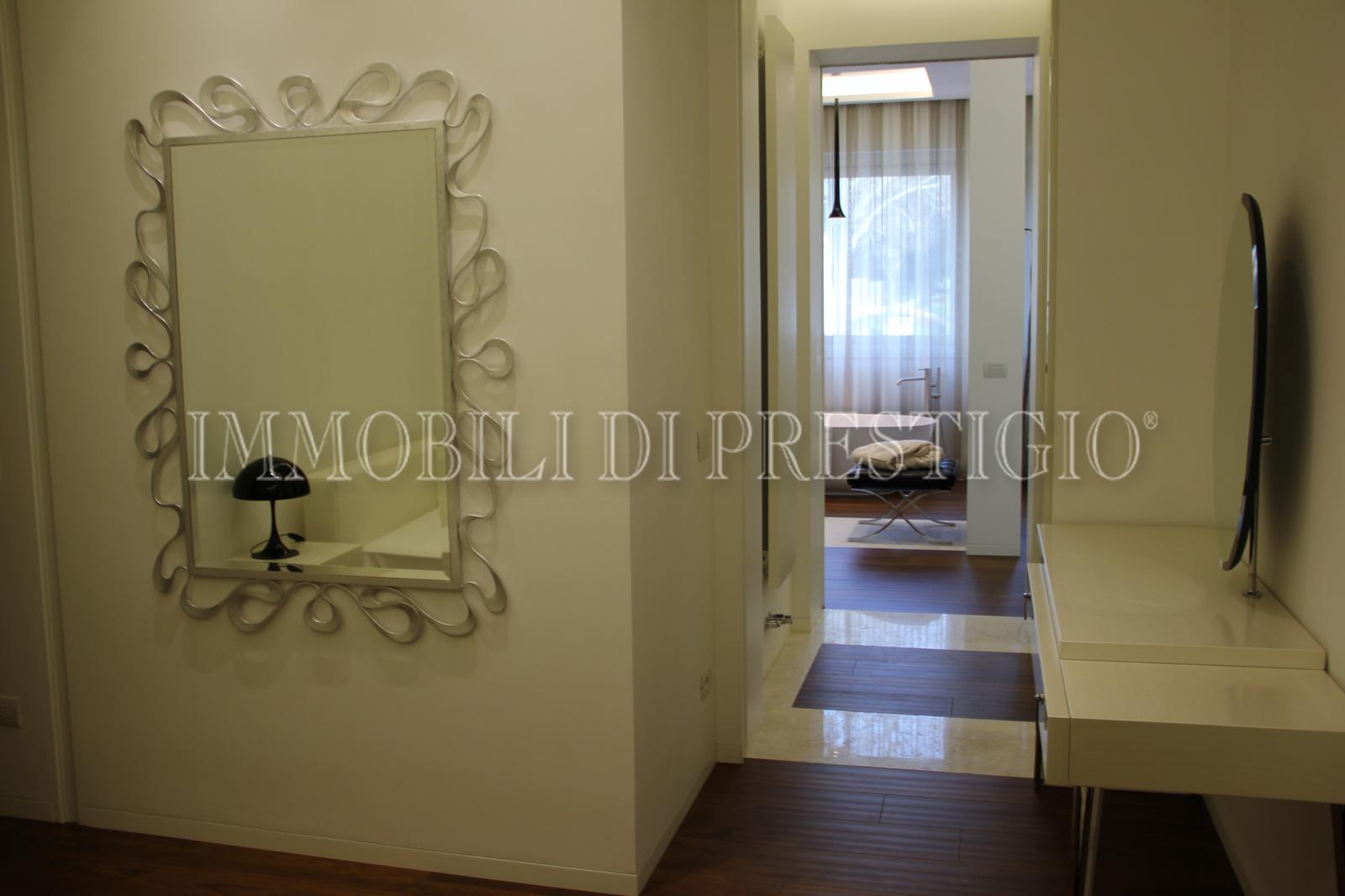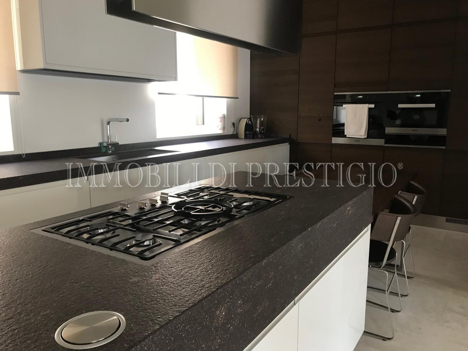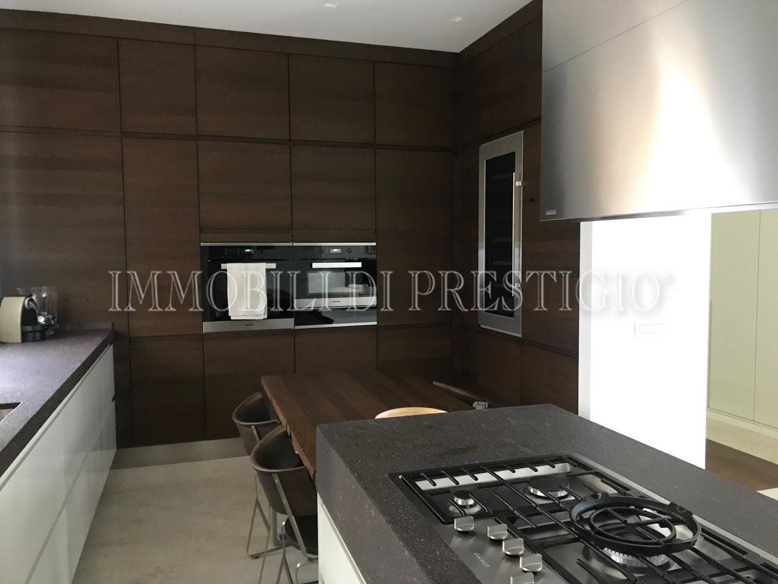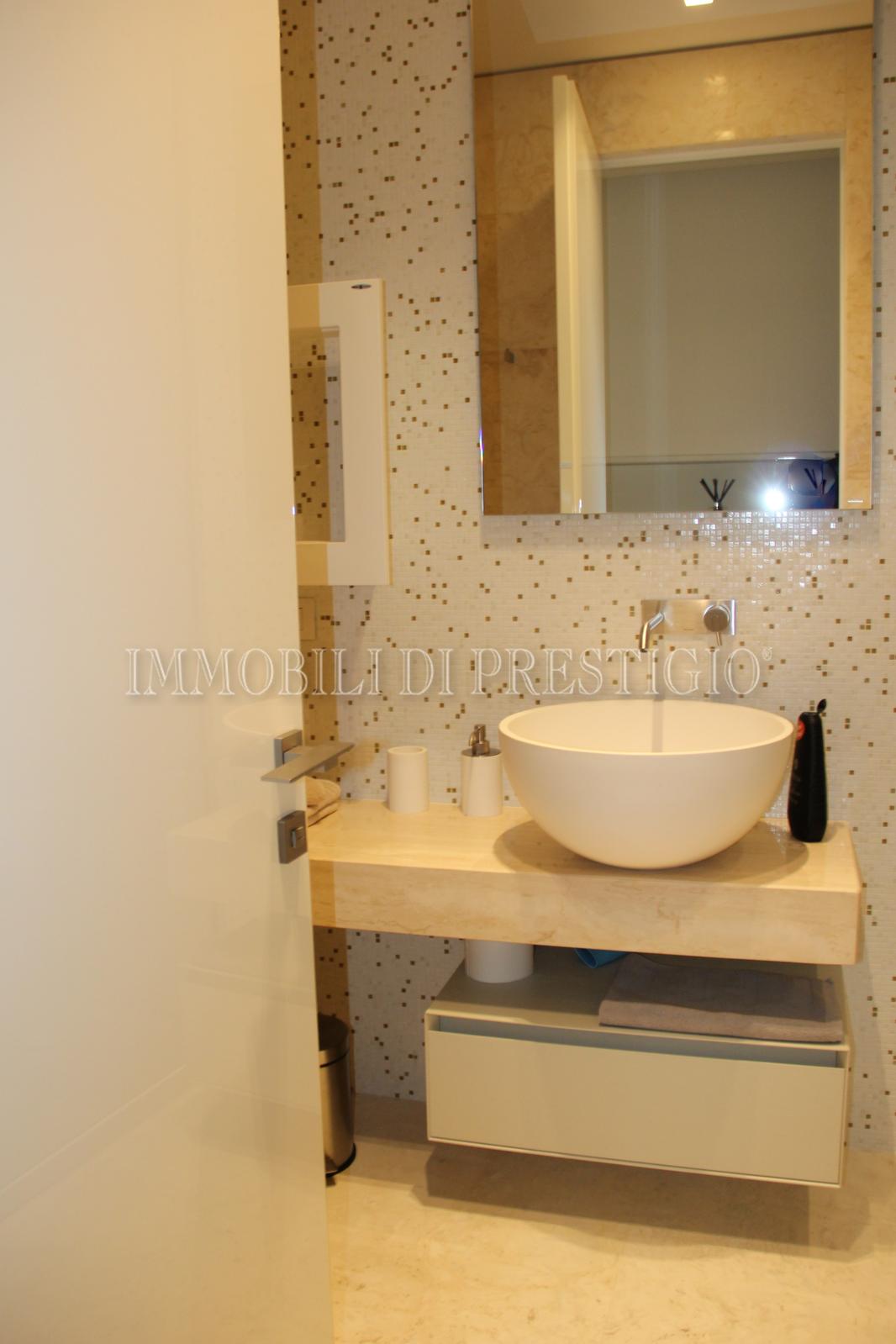 A long corridor embellished with modern boiserie and cupboard to measure, places in the sleeping area consisting of the three double bedrooms with en suite bathrooms, of which the master with exposed bath, shower and wardrobe, service room, with laundry / ironing; From the sleeping area you can access the large panoramic loggia and a long balcony facing the area.