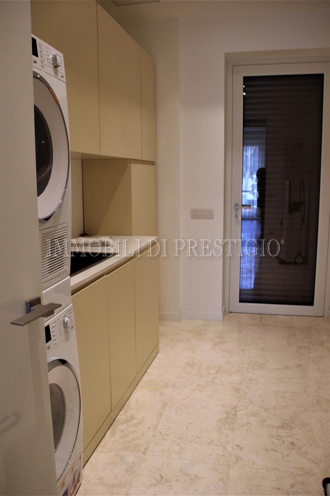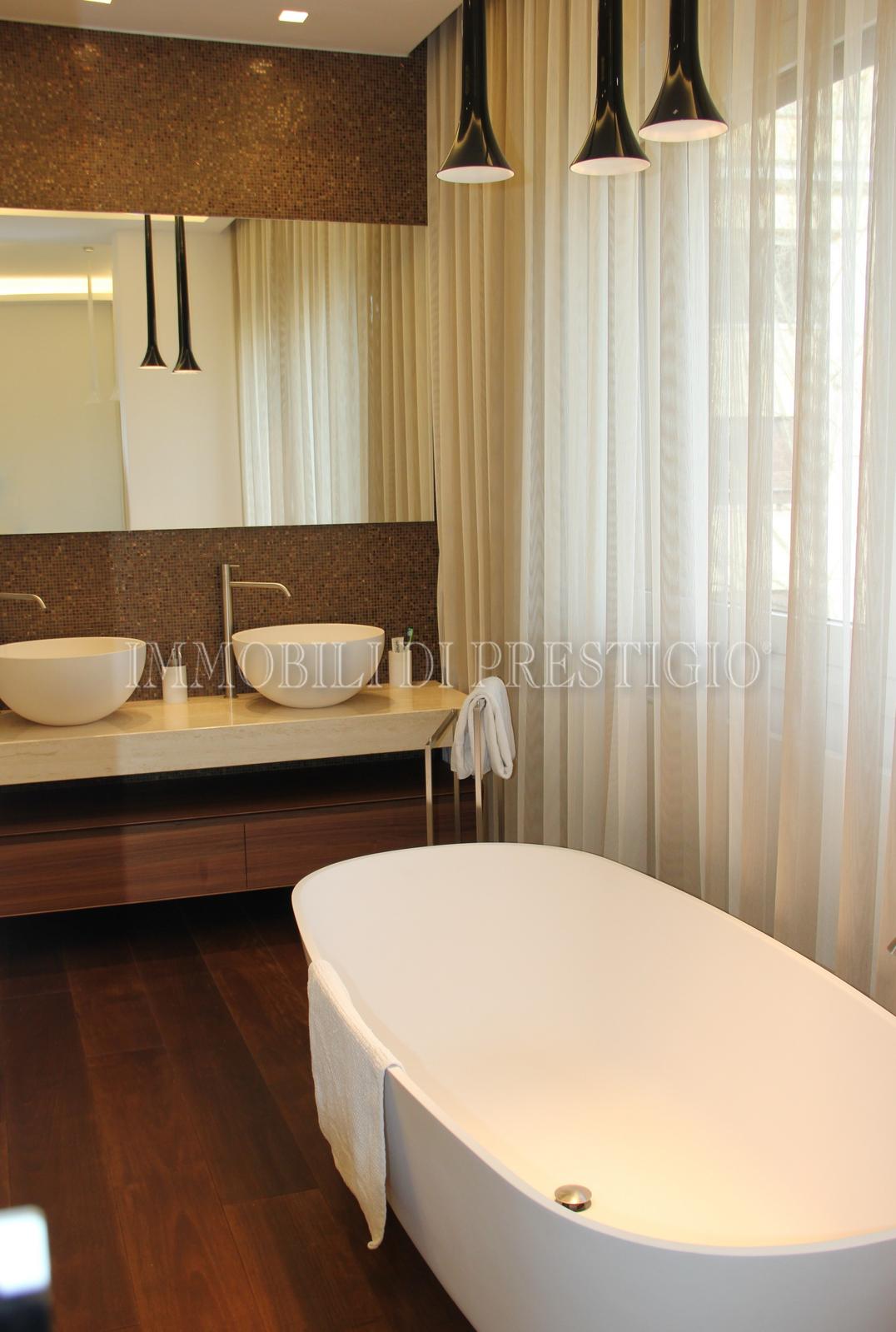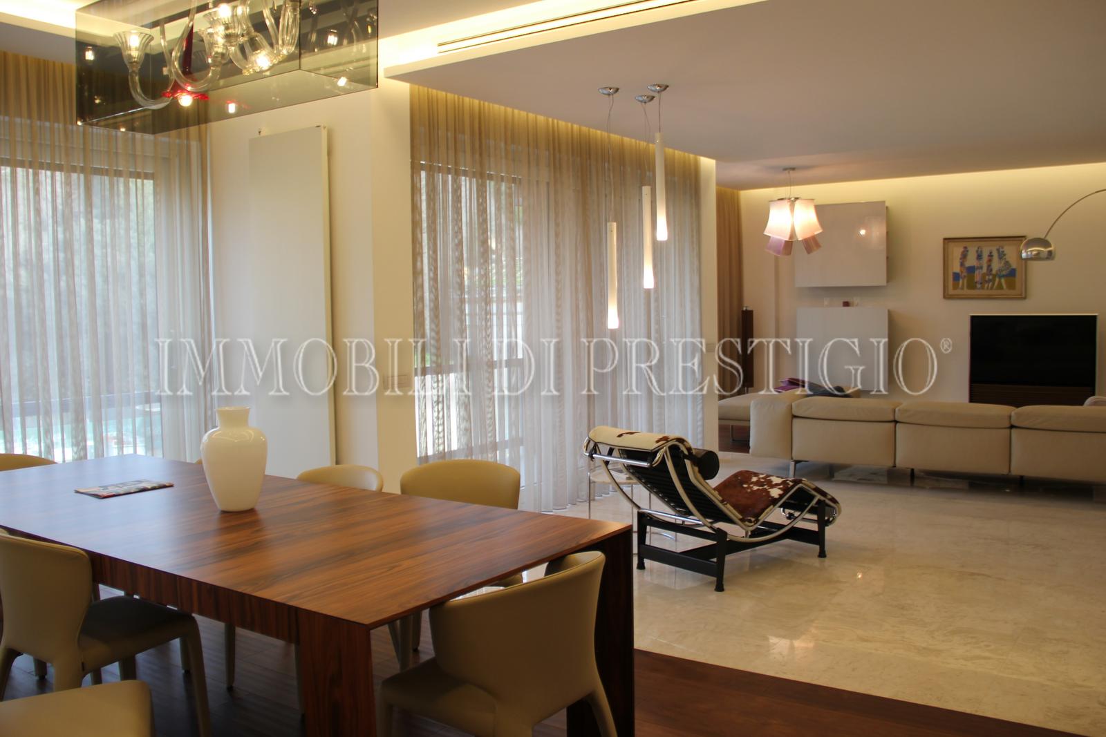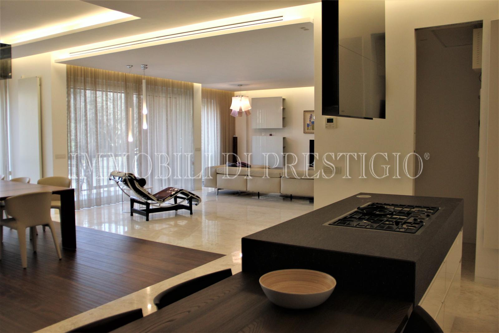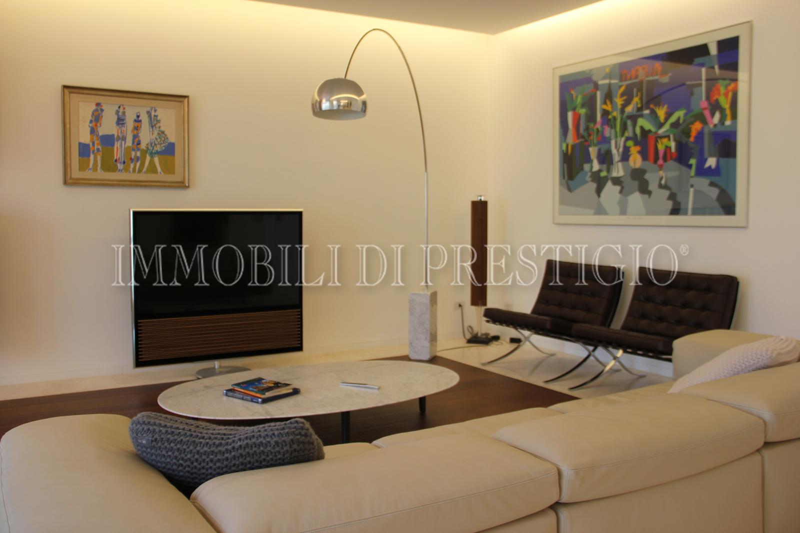 A long corridor embellished with modern boiserie and cupboard to measure, places in the sleeping area consisting of the three double bedrooms with en suite bathrooms, of which the master with exposed bath, shower and wardrobe, service room, with laundry / ironing; From the sleeping area you can access the large panoramic loggia and a long balcony facing the area.