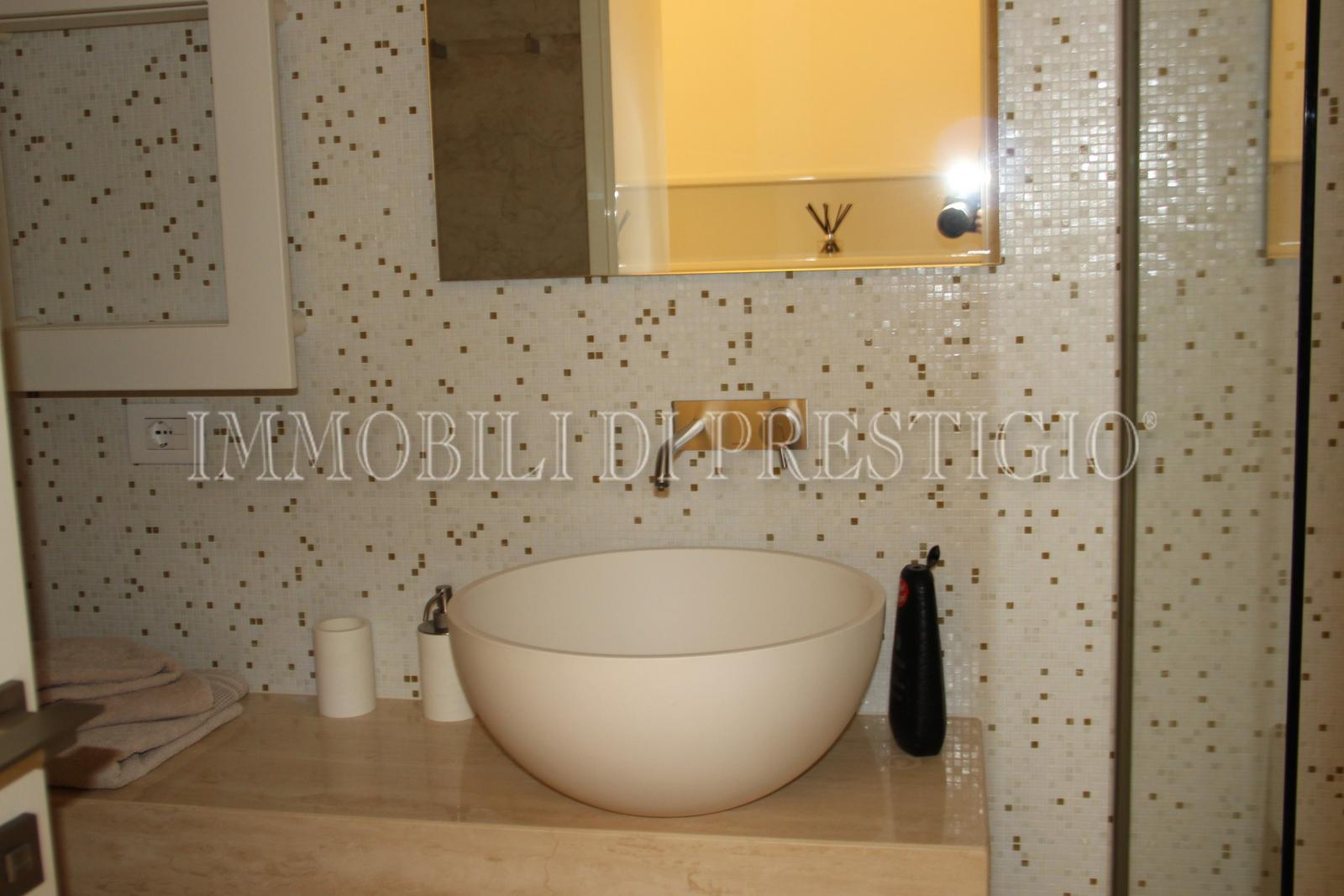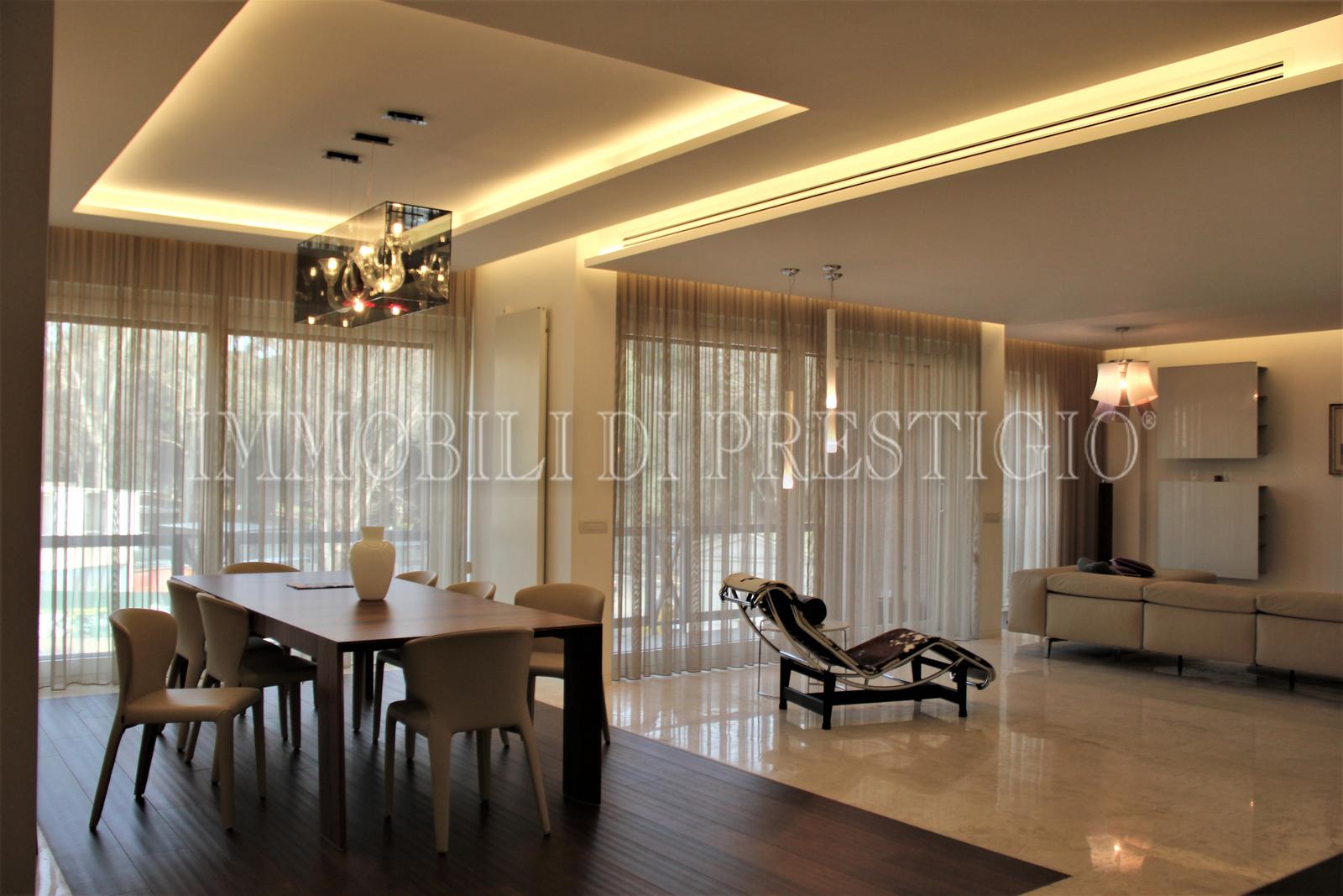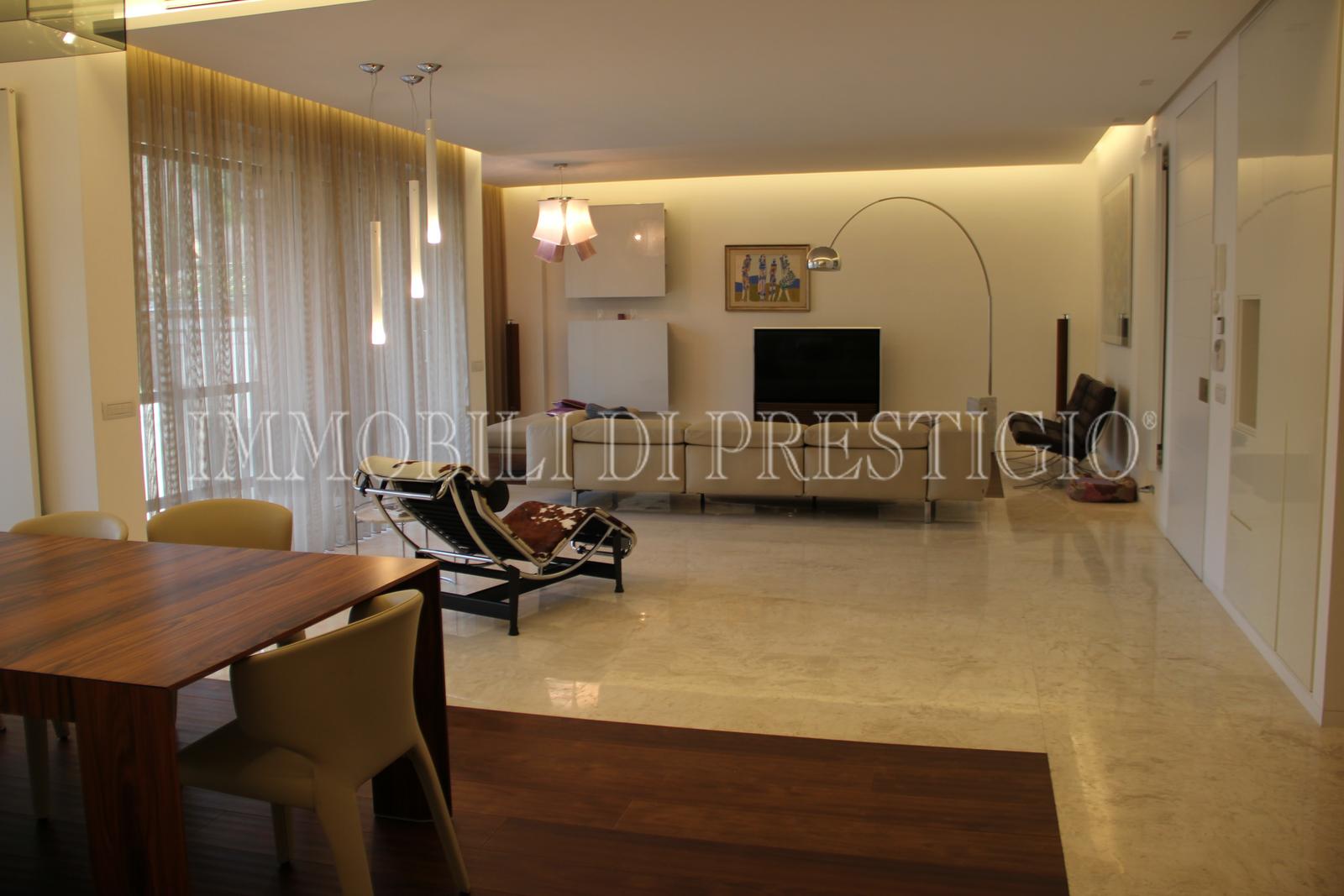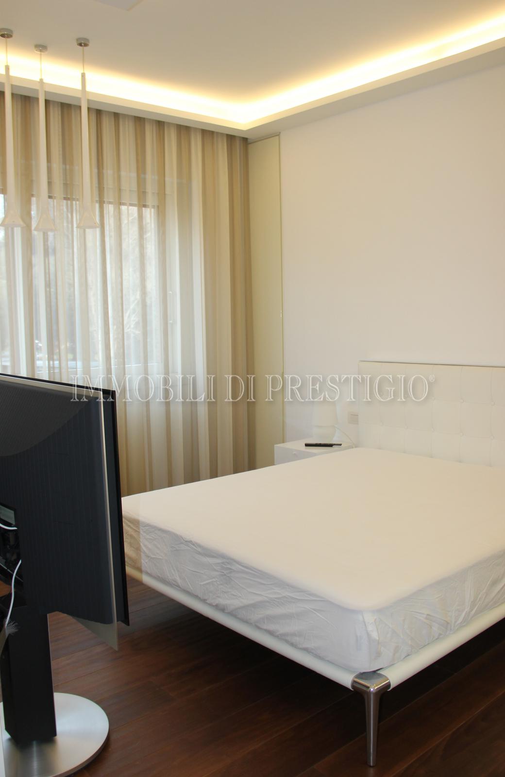 A long corridor embellished with modern boiserie and cupboard to measure, places in the sleeping area consisting of the three double bedrooms with en suite bathrooms, of which the master with exposed bath, shower and wardrobe, service room, with laundry / ironing; From the sleeping area you can access the large panoramic loggia and a long balcony facing the area.