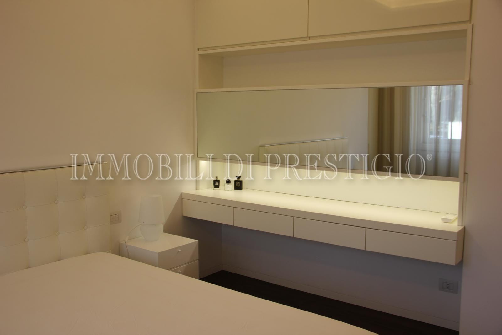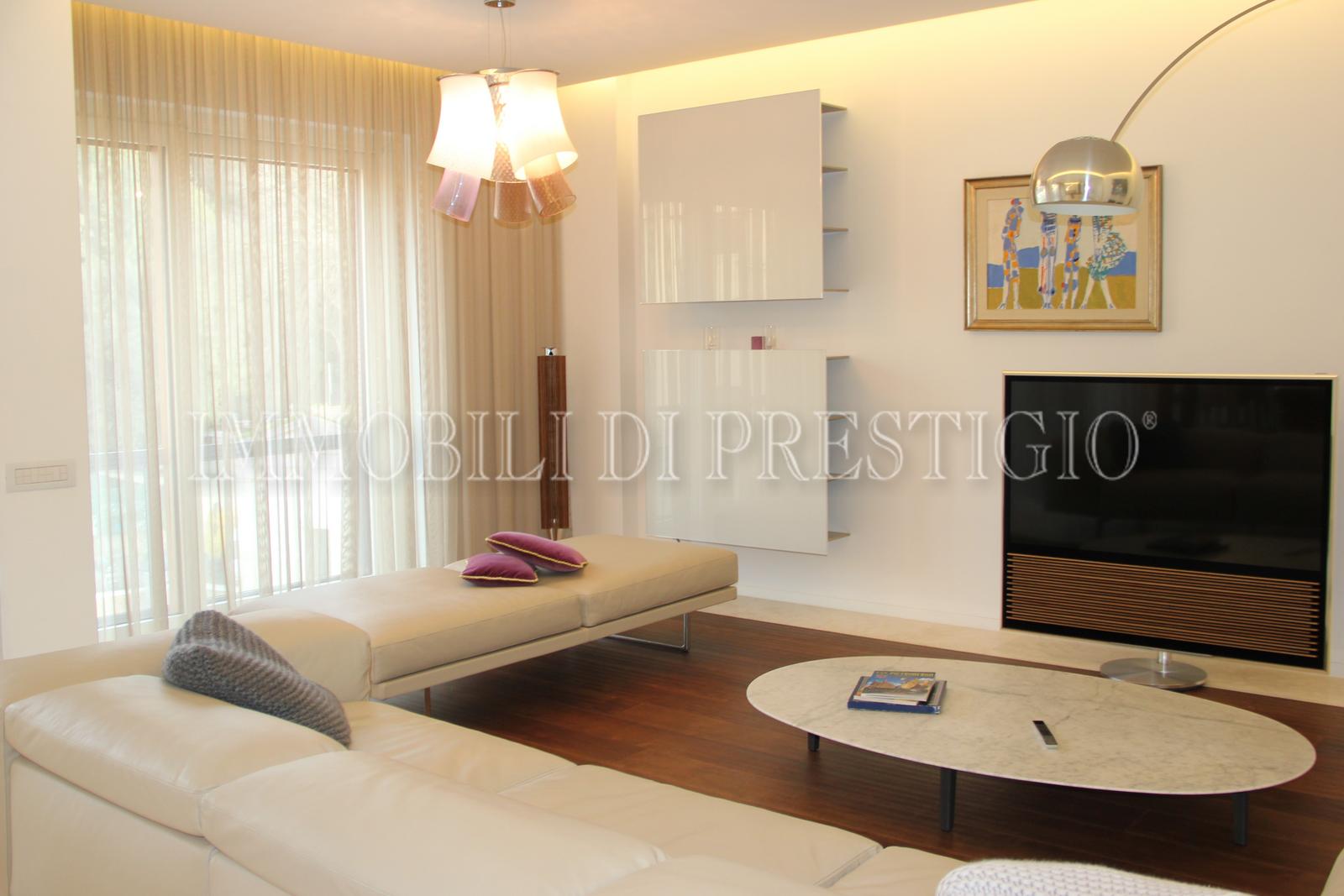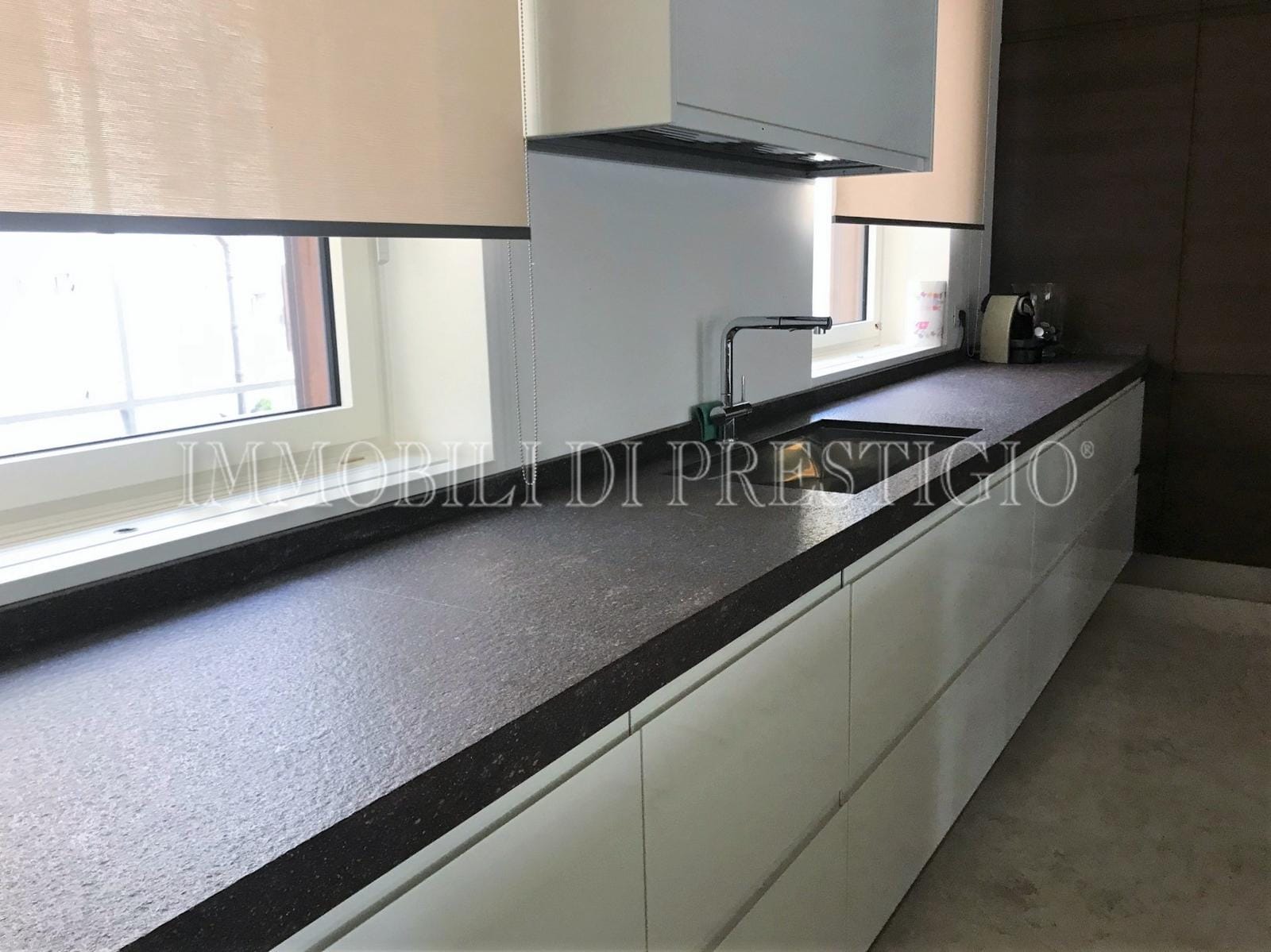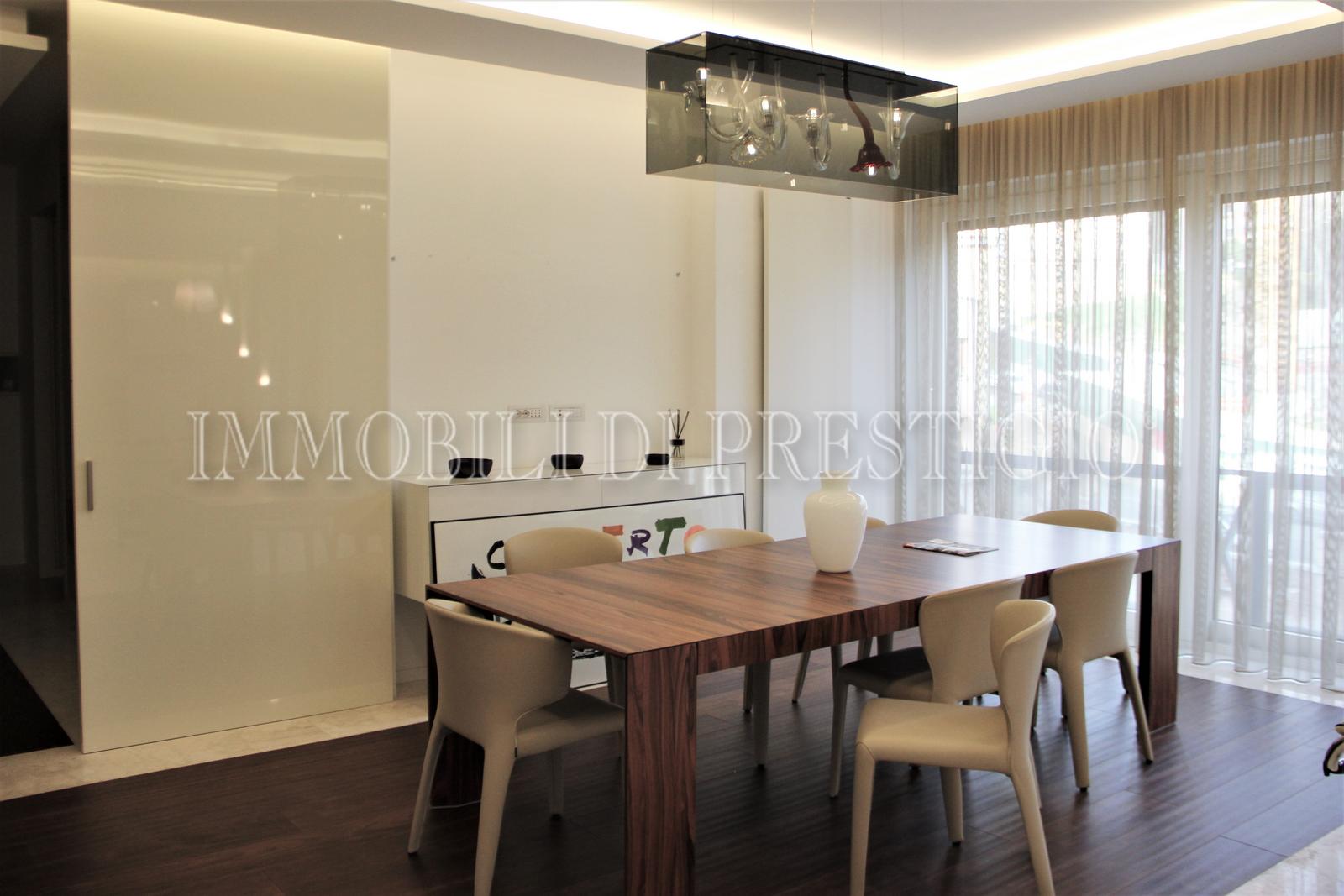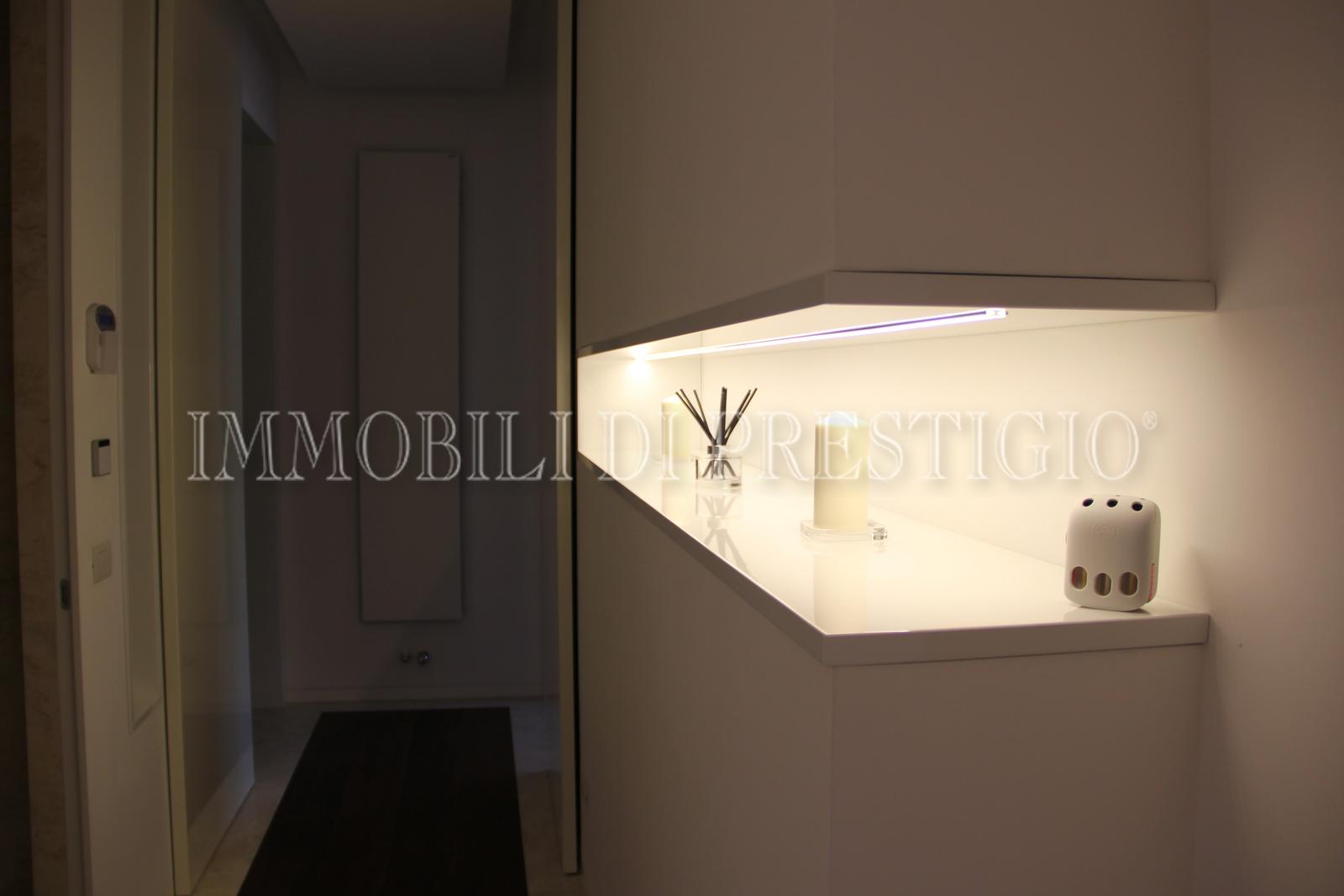 A long corridor embellished with modern boiserie and cupboard to measure, places in the sleeping area consisting of the three double bedrooms with en suite bathrooms, of which the master with exposed bath, shower and wardrobe, service room, with laundry / ironing; From the sleeping area you can access the large panoramic loggia and a long balcony facing the area.