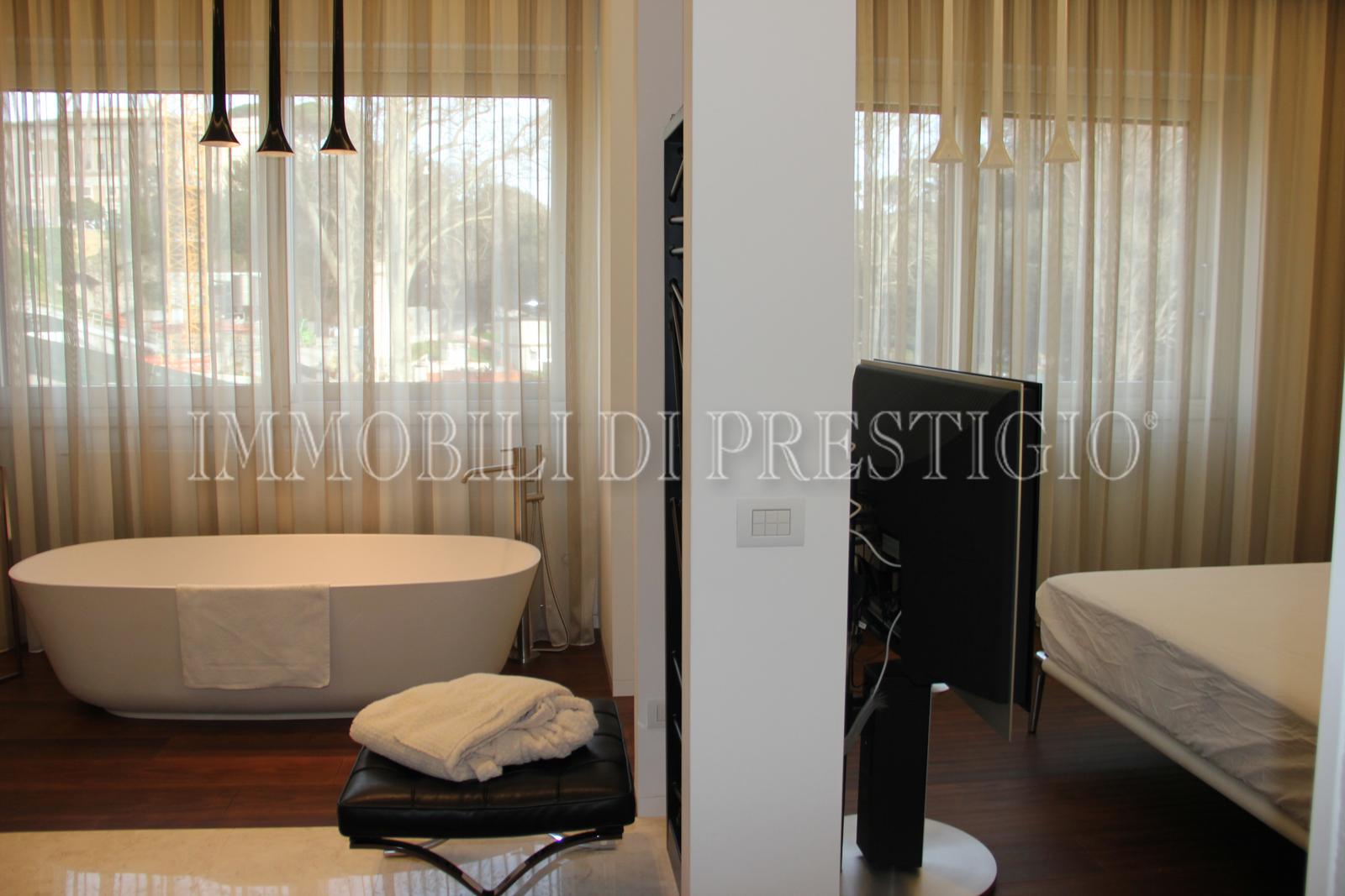 The loggia, the living room, the living area and two bedrooms overlook the east of Villa Borghese, a few steps away, and to the south on the beautiful door of the people who lead to the square of the same name and to the "Trident" of the historic center Roman within walking distance In three minutes, while the body of services with adjoining balcony and one bedroom exhibit west with a wide opening in front.