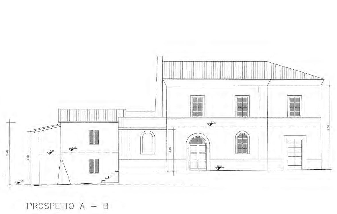 Una seconda scala interna assicura il collegamento con il secondo corpo di fabbrica, dotato anche di proprio ingresso indipendente. Si compone di al piano terra da un soggiorno con angolo cottura e bagno ed al primo piano di 3 camere da letto bagno e disimpegno.