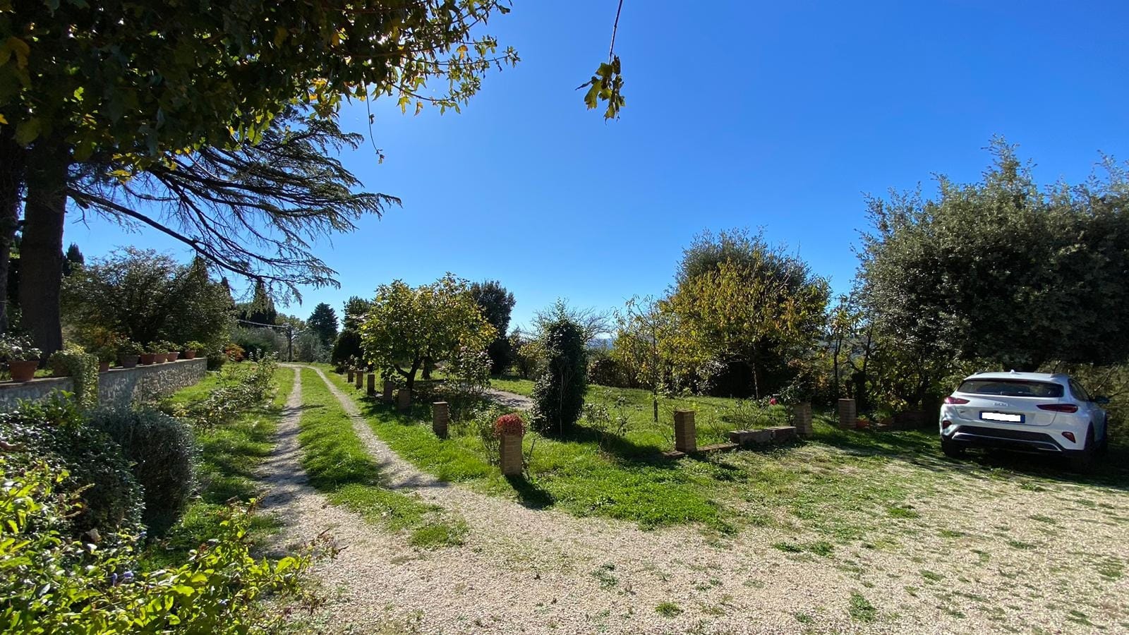 Attorno agli edifici troviamo un giardino curato di circa 2.000 m², con alberi dall'alto fusto, il restante terreno 20.000 m² è leggermente scoscesa destinato alla coltivazione, grazie a 150 piante di olivo alla produzione di olio extravergine e da frutteti.