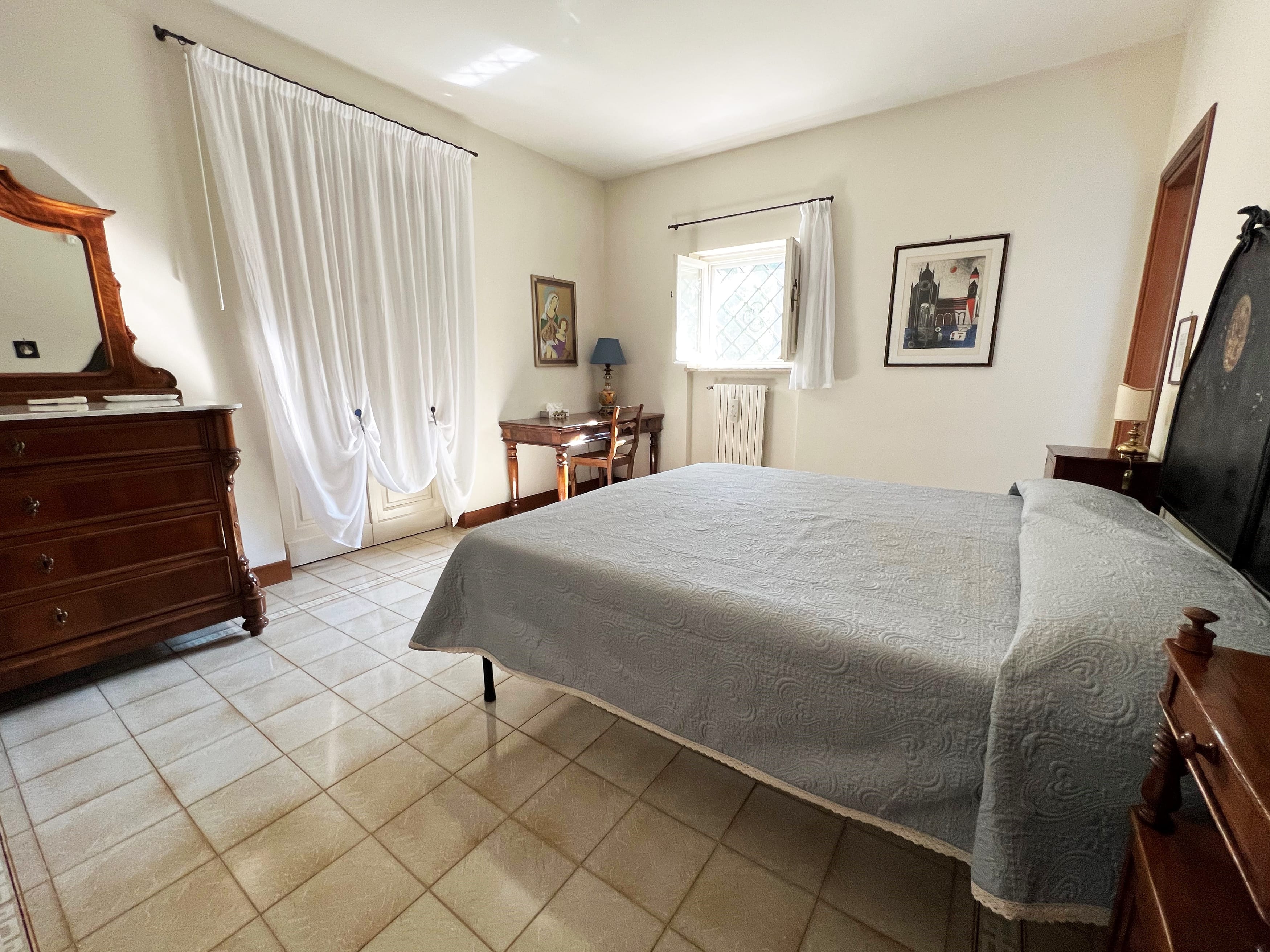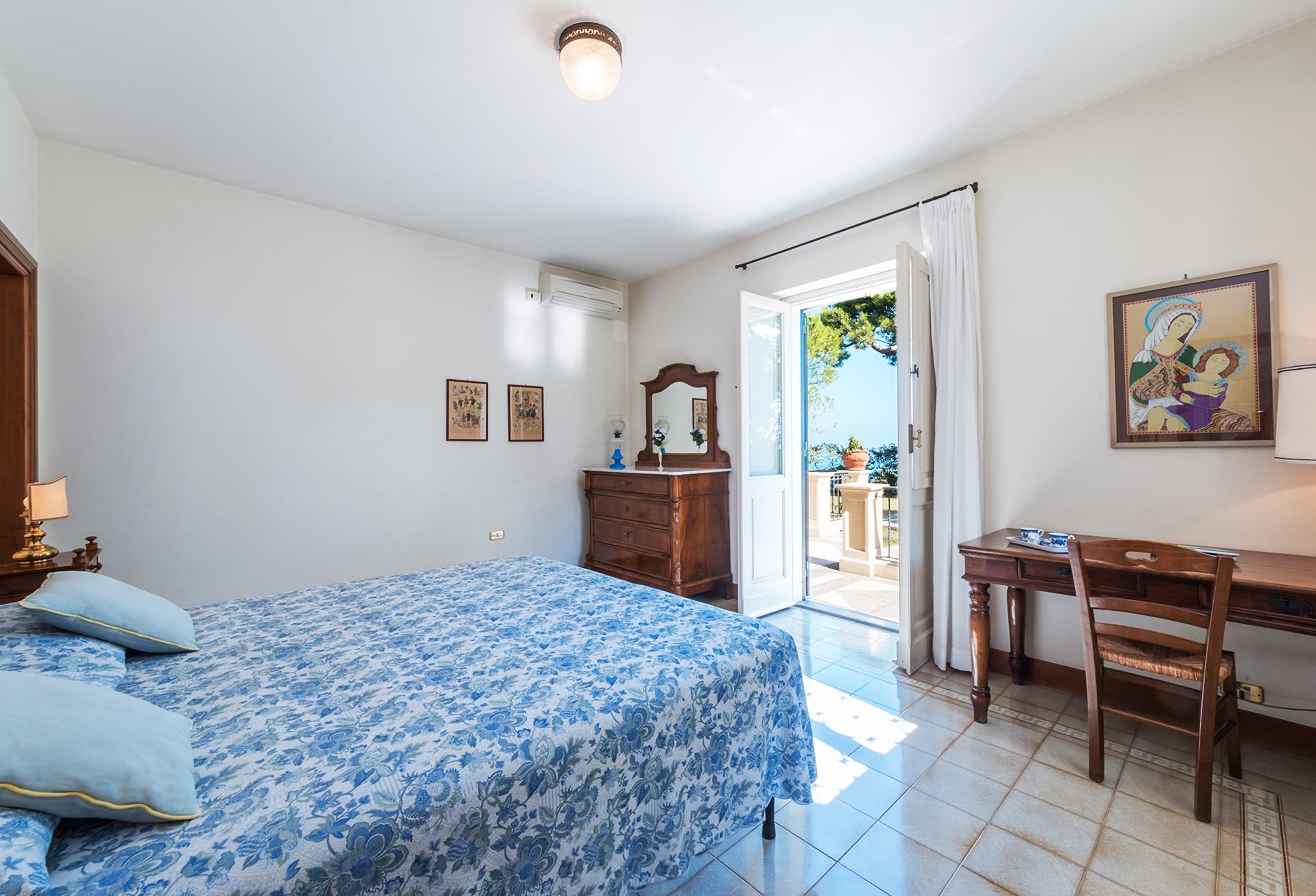 Al Piano superiore: appartamento padronale con camera da letto, grande bagno con vasca e doccia due terrazze con vista panoramica sul mare e sulla valle e due ampi locali sottotetto.