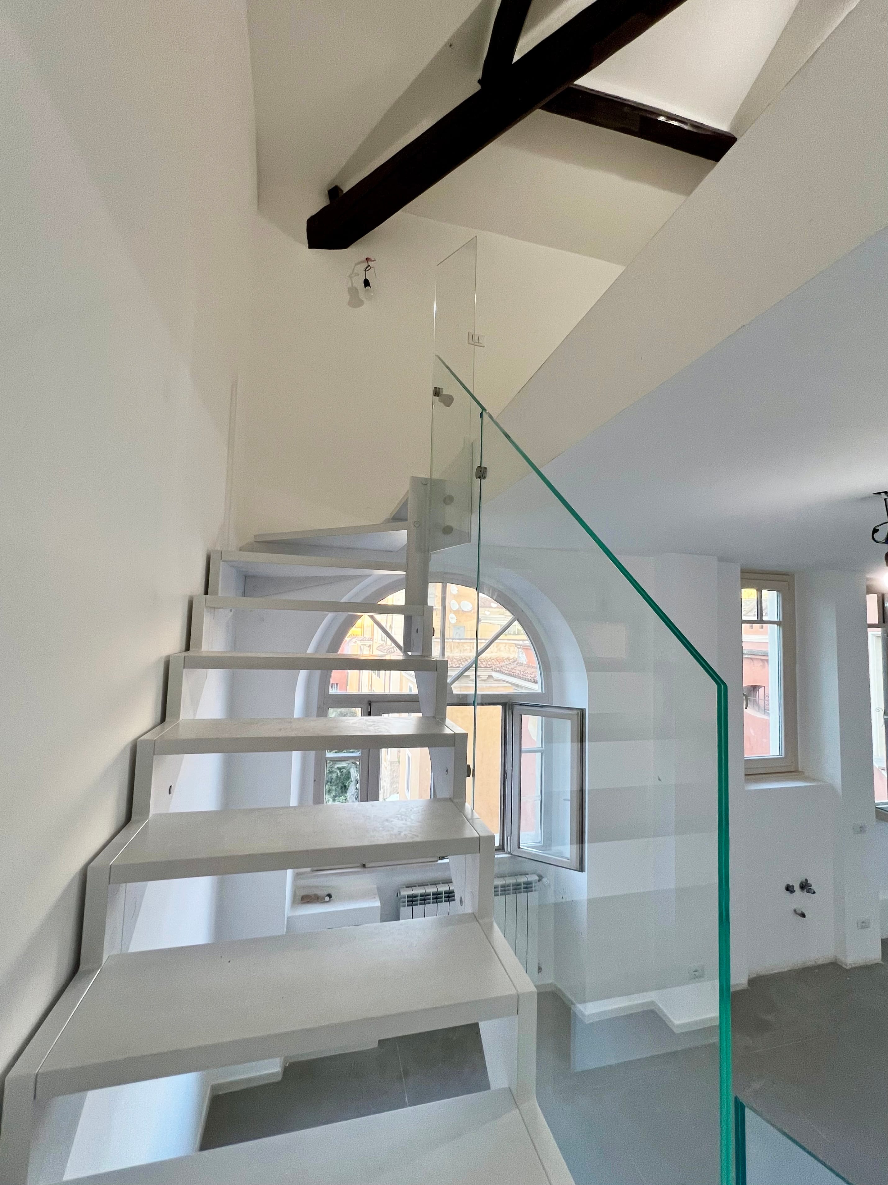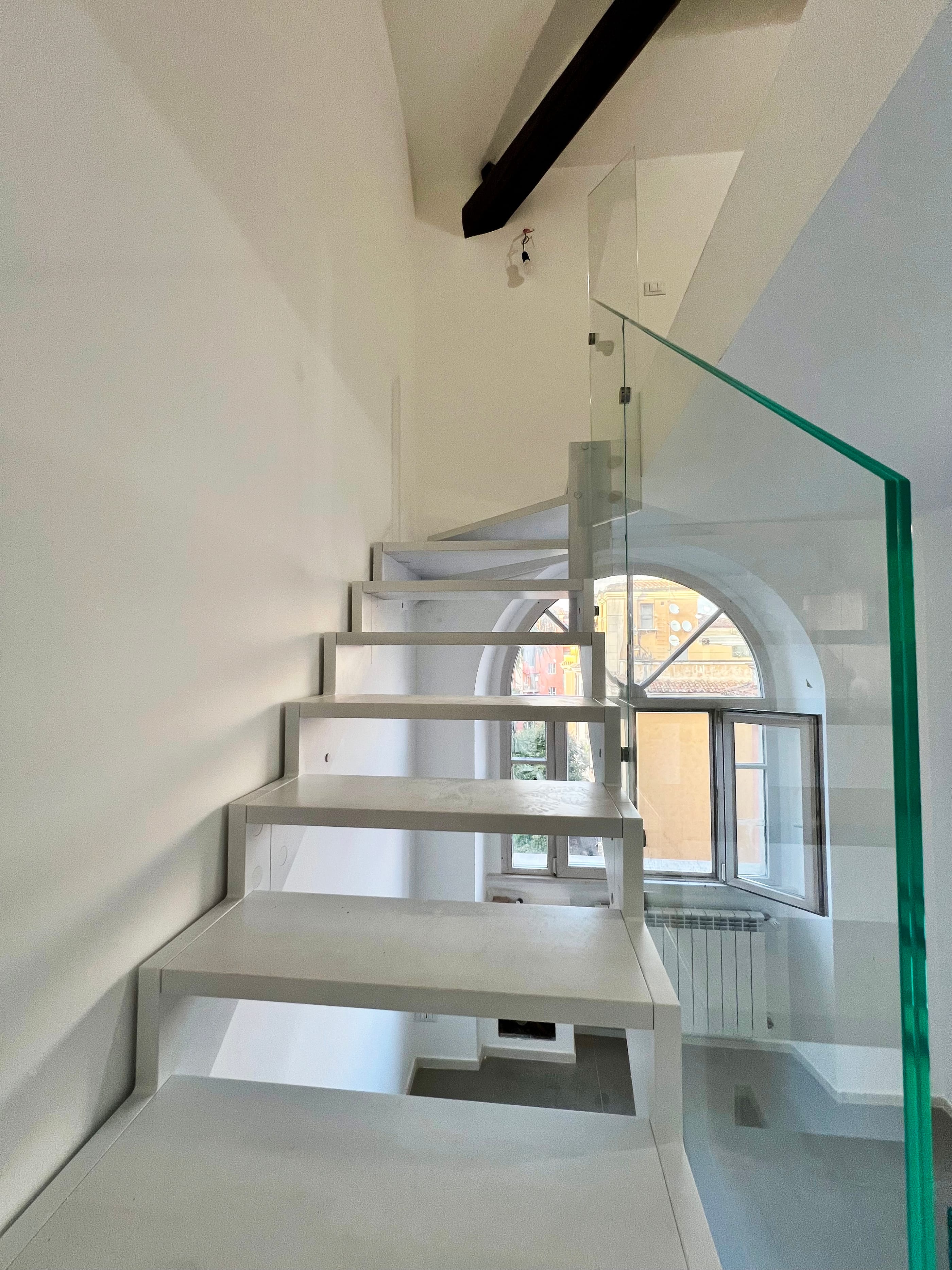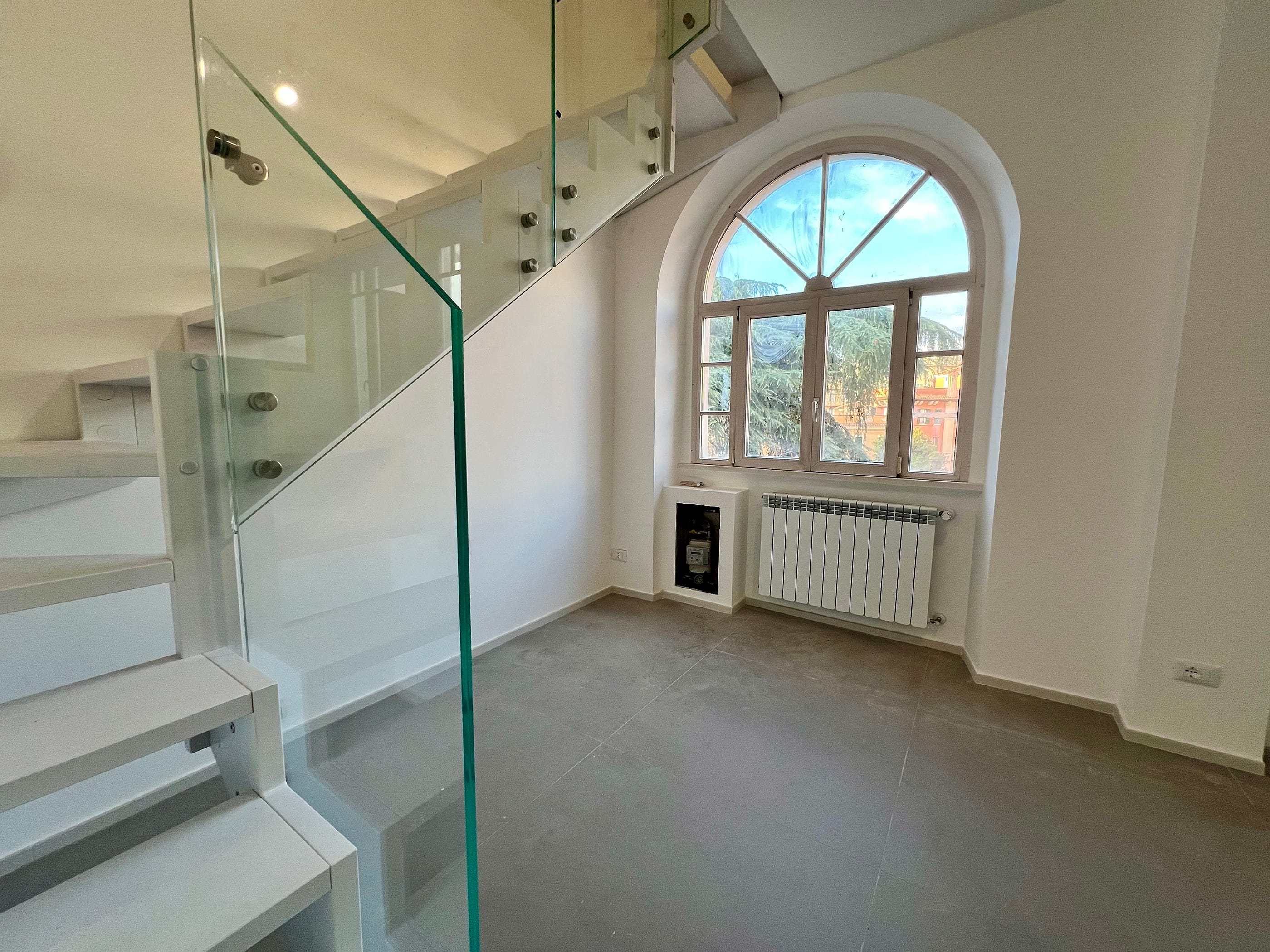 Posto al piano quarto e ultimo (quinto catastale) dell'edificio, l'appartamento, di circa 140,00 mq coperti, si sviluppa su due livelli collegati da bella scala interna, come segue.