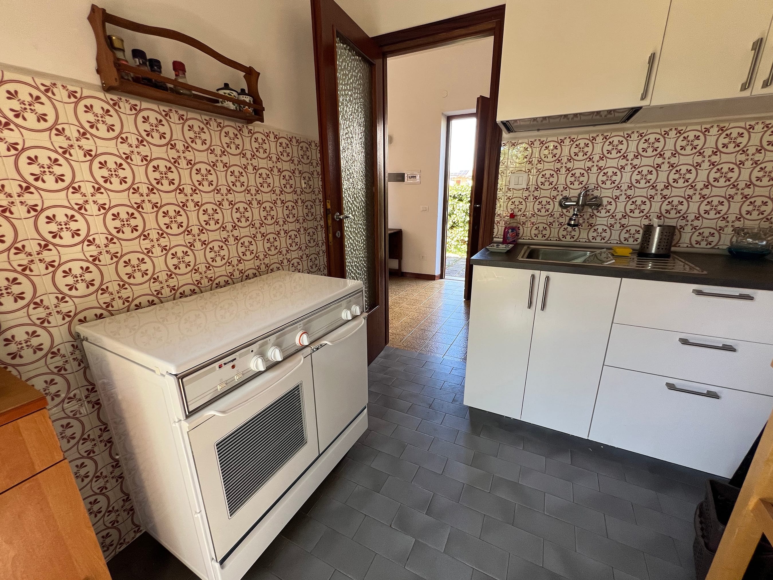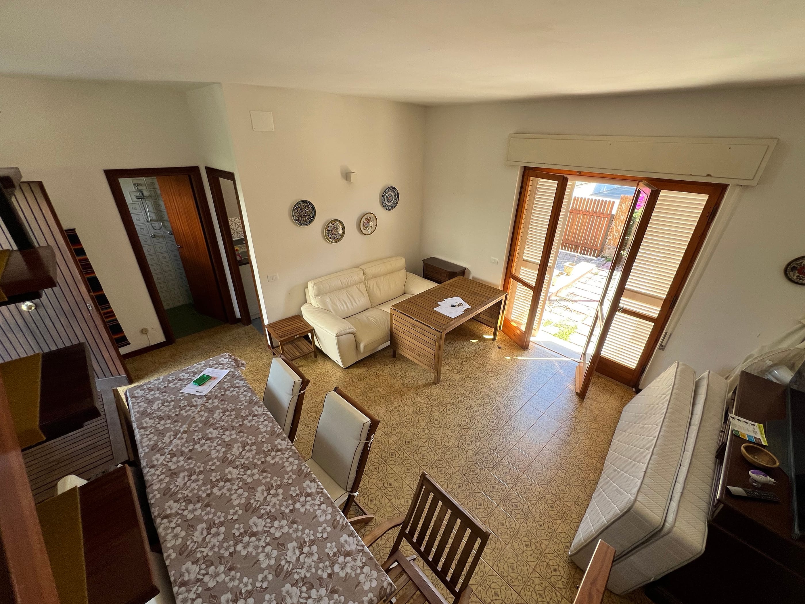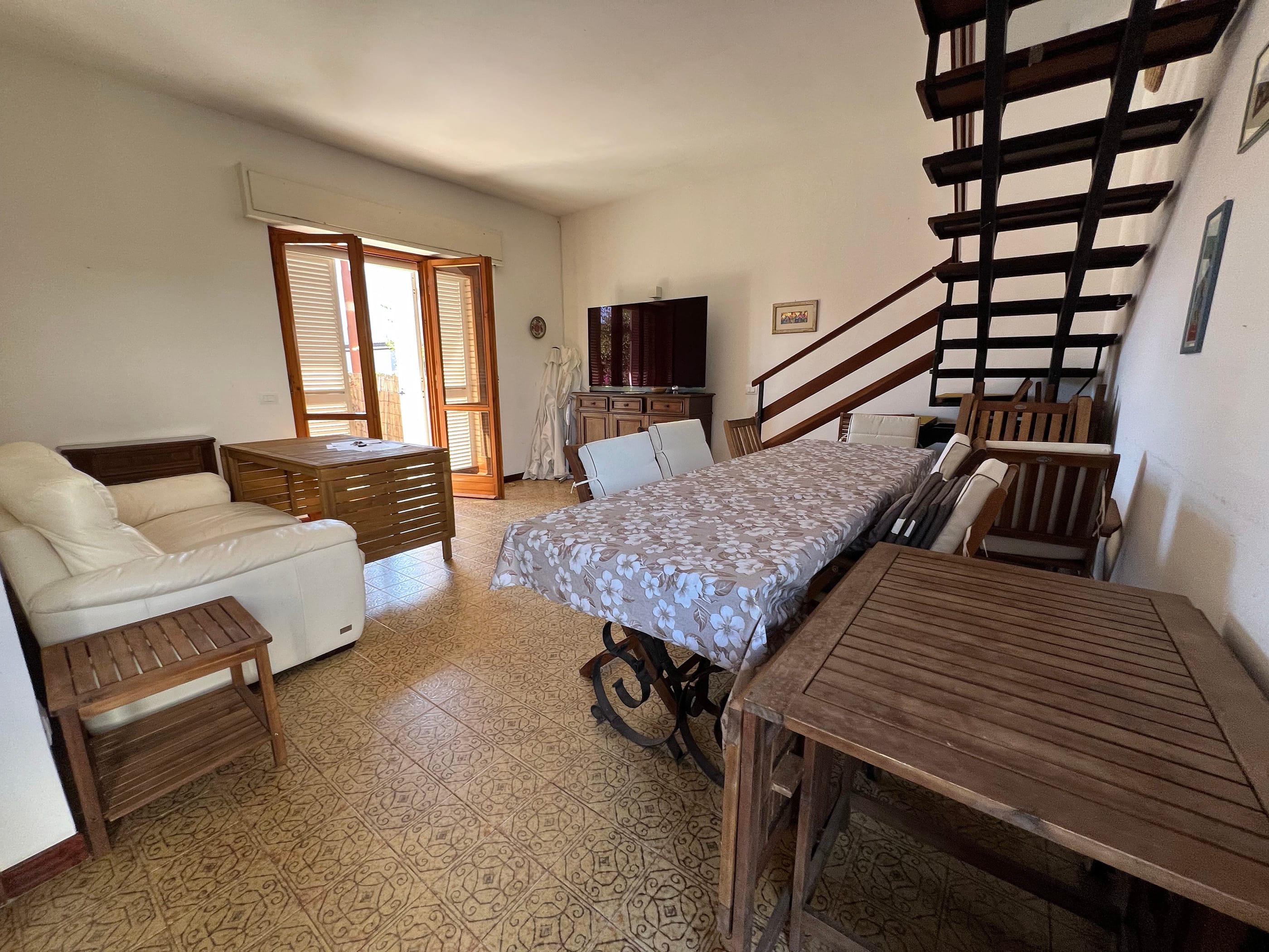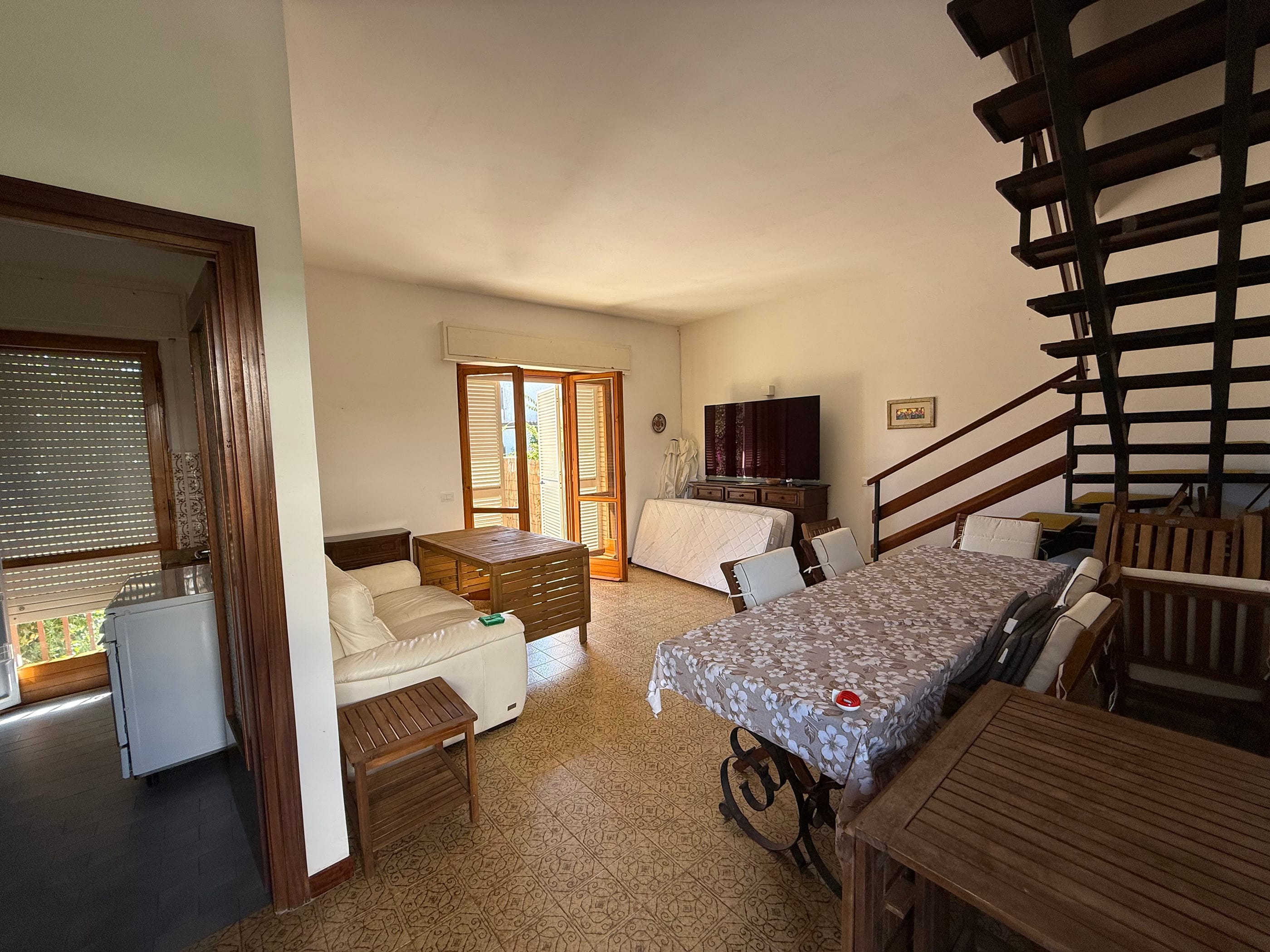 Al piano Terra, con doppio ingresso attraverso le due corti private: soggiorno-pranzo, cucina e bagno.