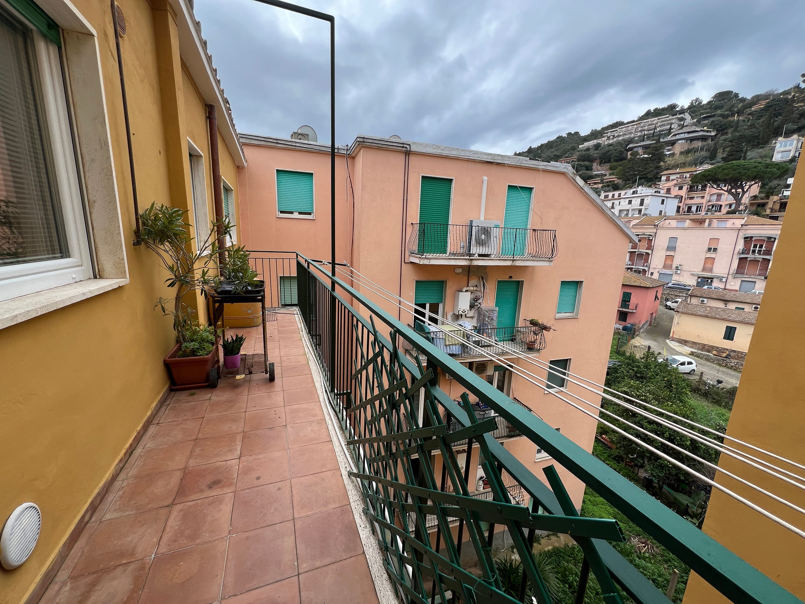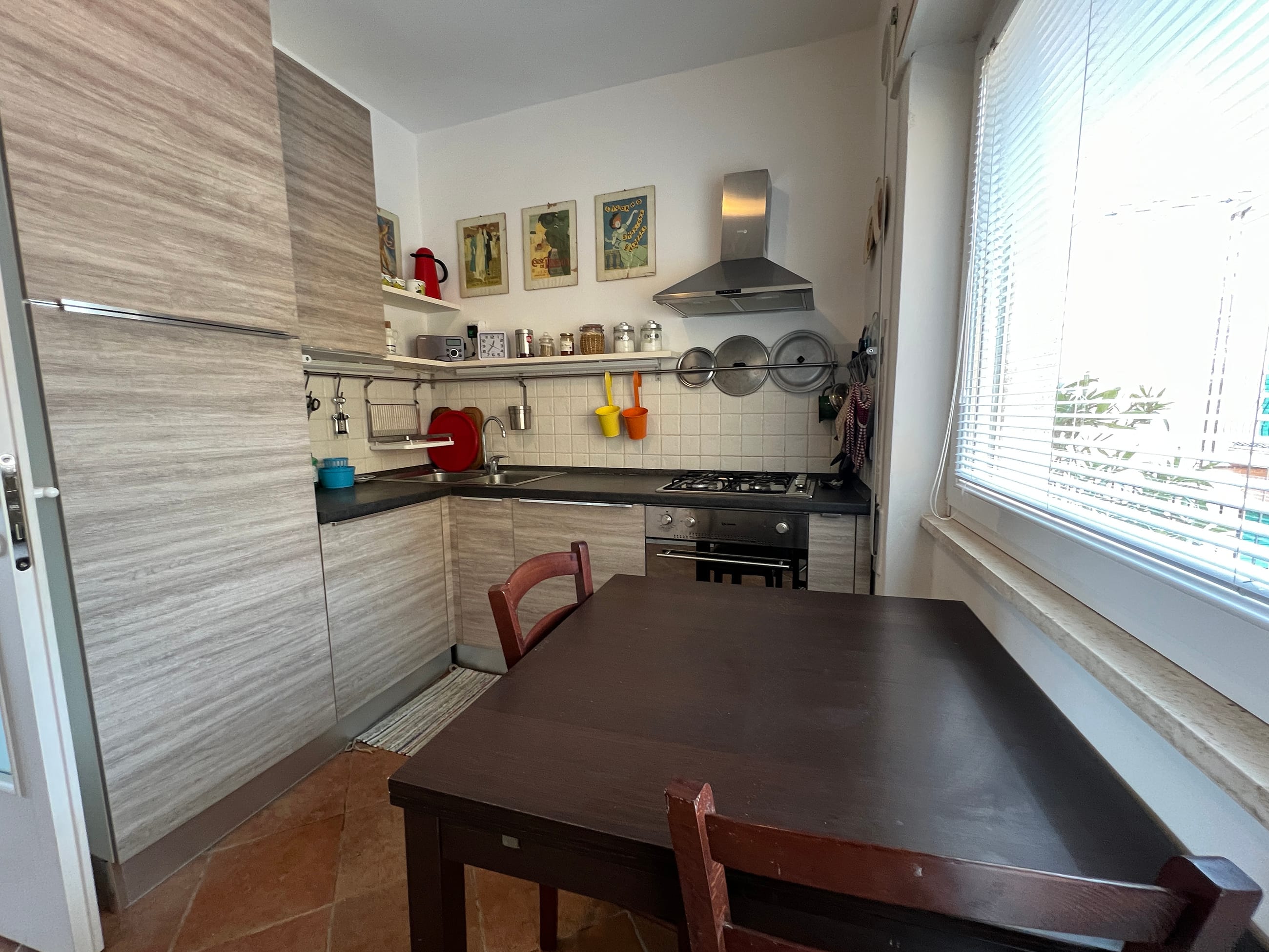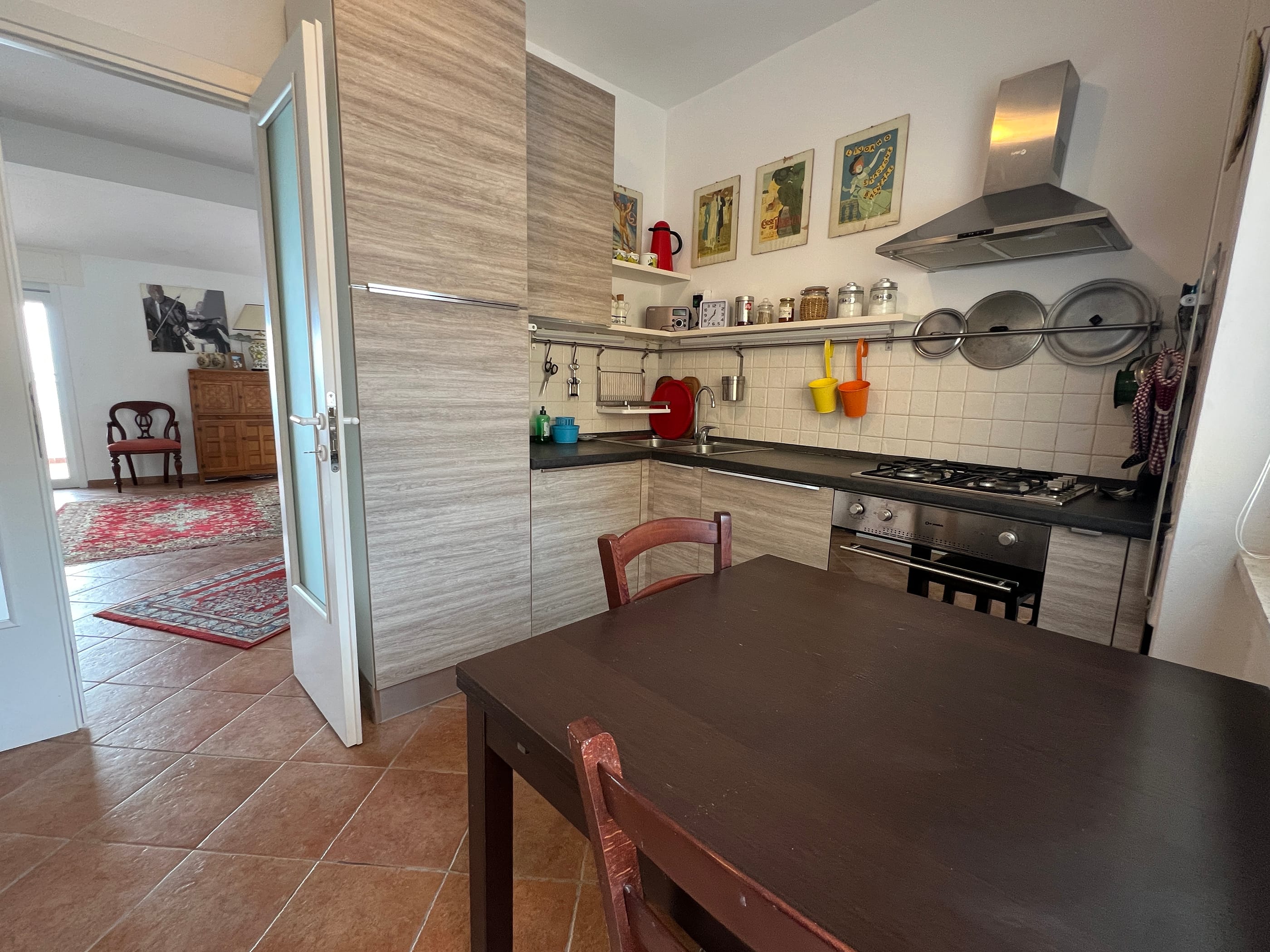Dalla parte opposta, l'ingresso immette nella cucina abitabile, completamente attrezzata, da cui si accede a un'ampia balconata.