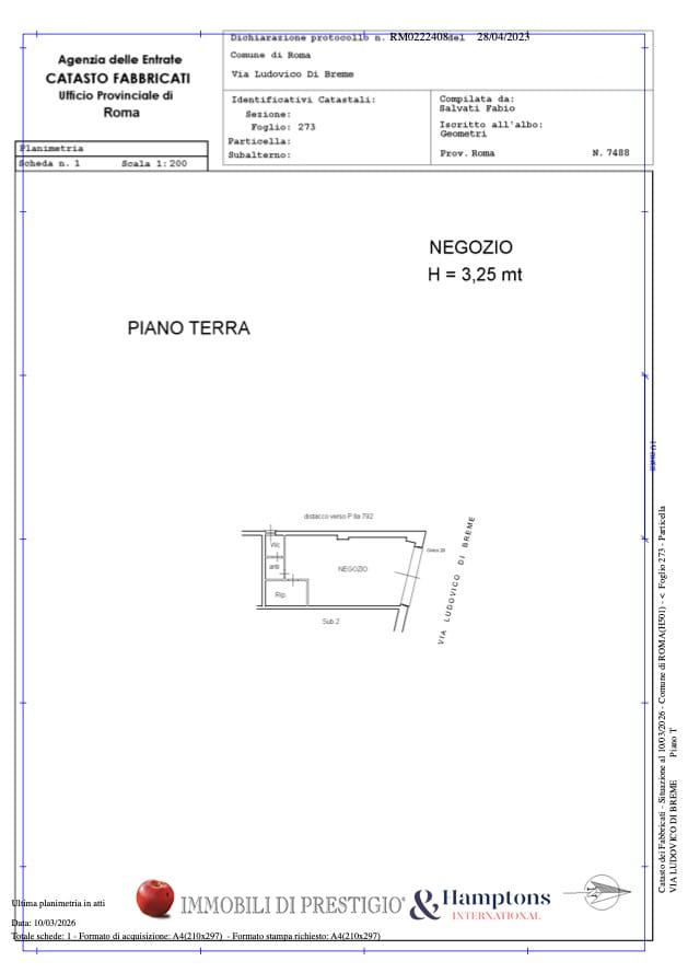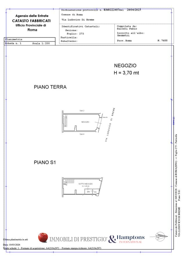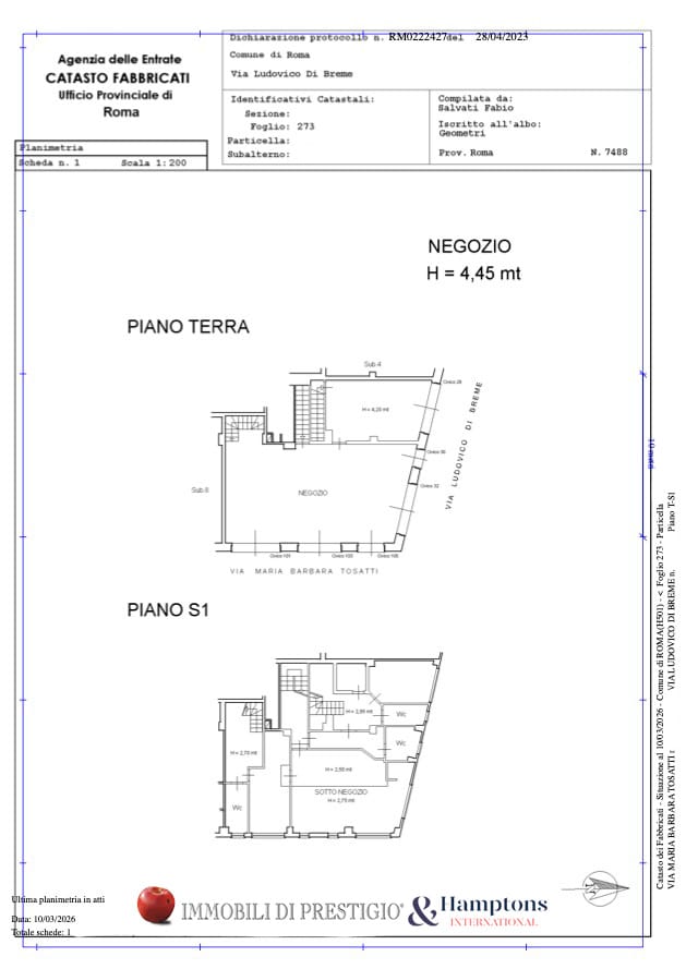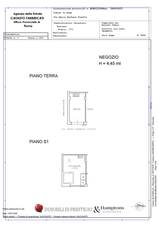 - уровень улицы - 37,00 м2: большой торговый зал с 1 дверью/окном на Via Maria Barbara Tosatti;